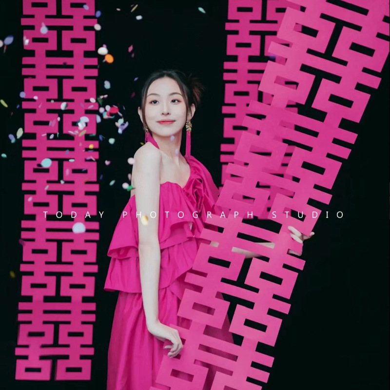 웨딩 커튼 긴 해피 캐릭터 매달려 장식 웨딩 룸 장식 세트 새 집 침실 꽃 장식 웨딩 사진 소품스토어 가기
