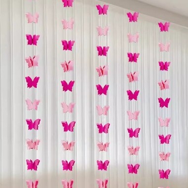• 12CM** 2.2m 핑크 + 로즈 레드 나비 해피 스트링 [한 줄]