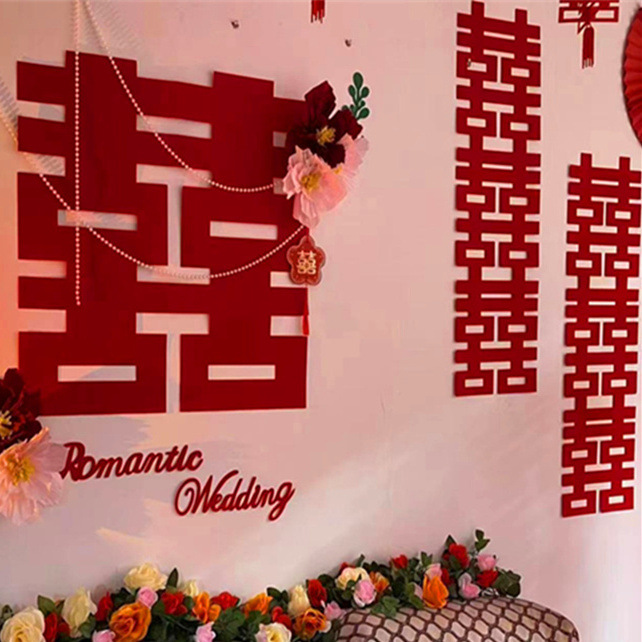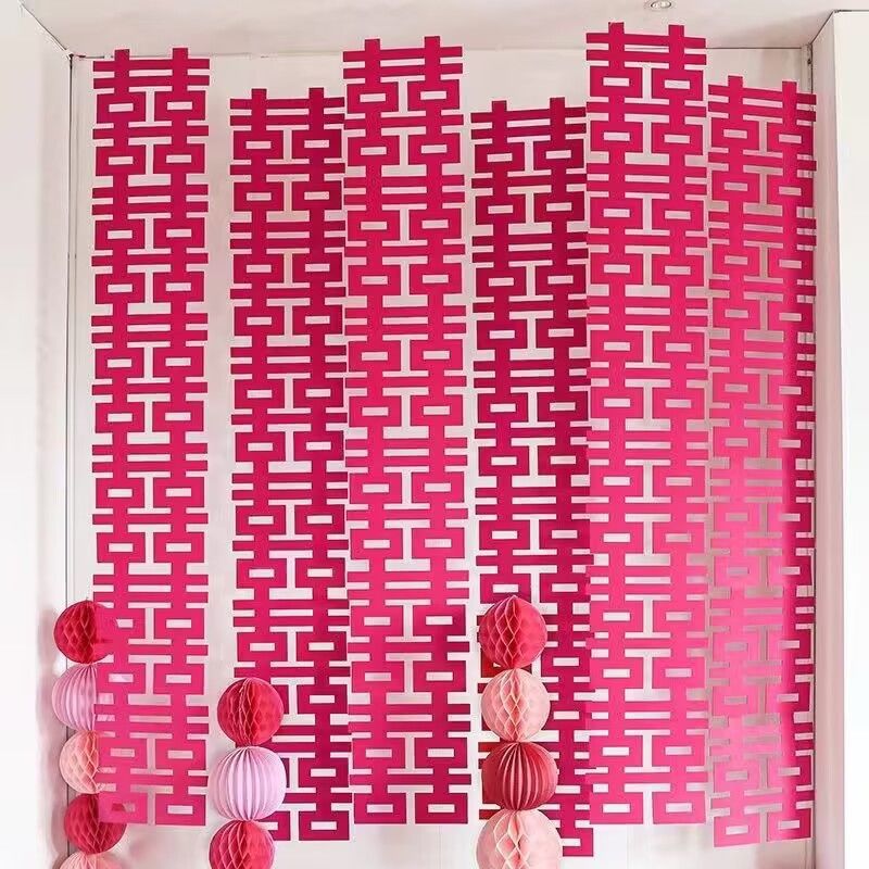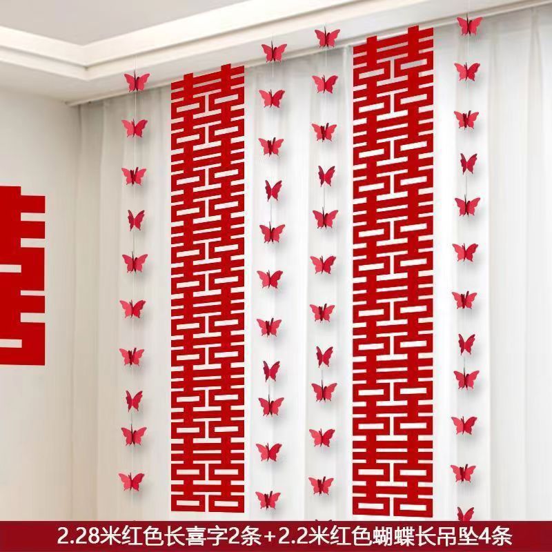 웨딩 커튼 긴 해피 캐릭터 매달려 장식 웨딩 룸 장식 세트 새 집 침실 꽃 장식 웨딩 사진 소품