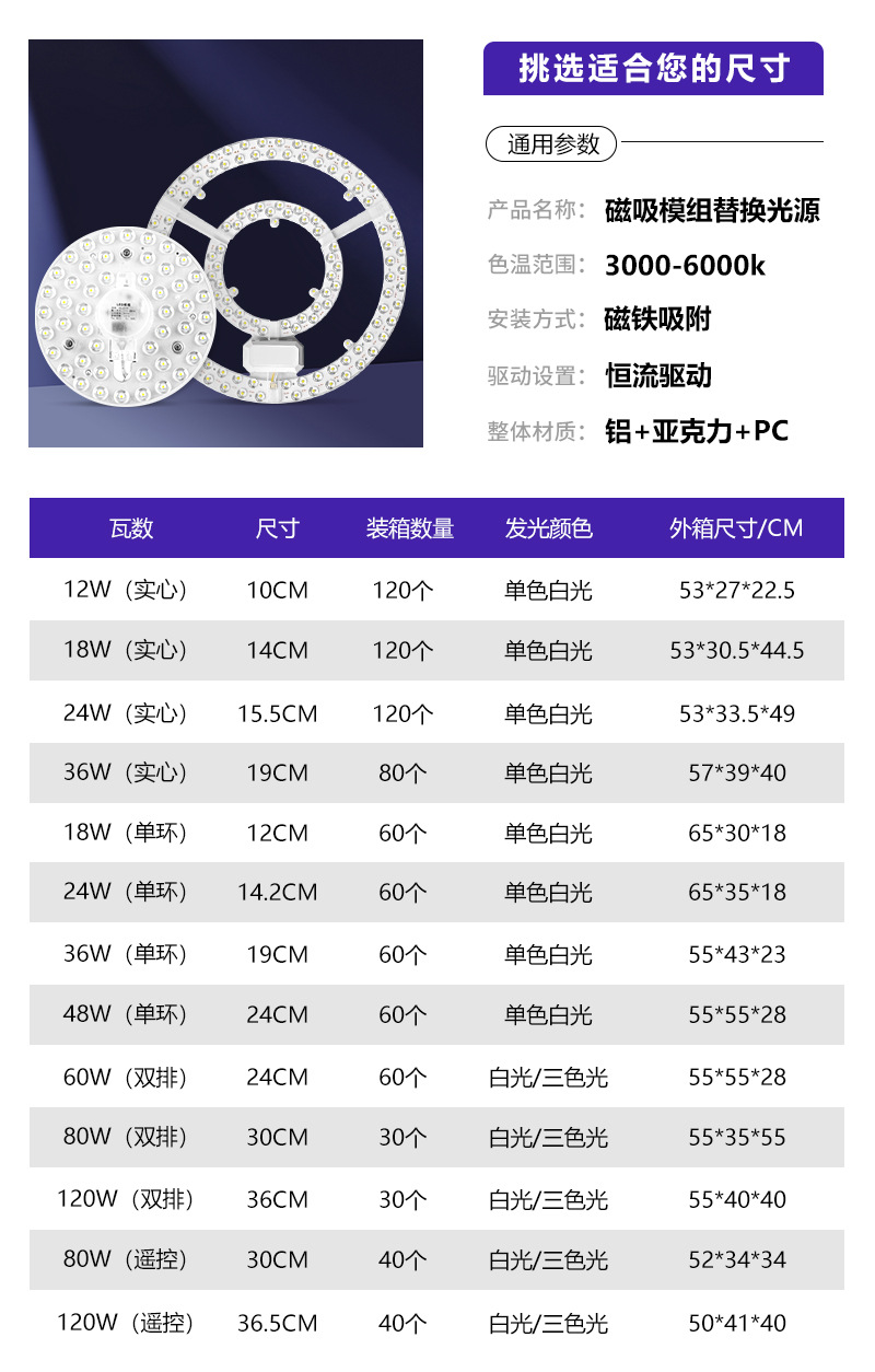공장 도매 led 천장 조명 홀 침실 슈퍼 밝은 라운드 교체 코어 자기 3 색 광원 모듈 코어스토어 가기