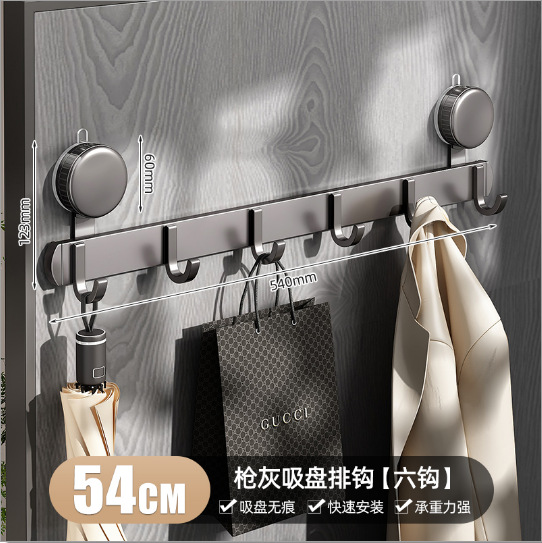 • 흡착컵 도어 뒤 - 건그레이 싱글후크 - 후크 6개 [강력흡착/설치불필요]