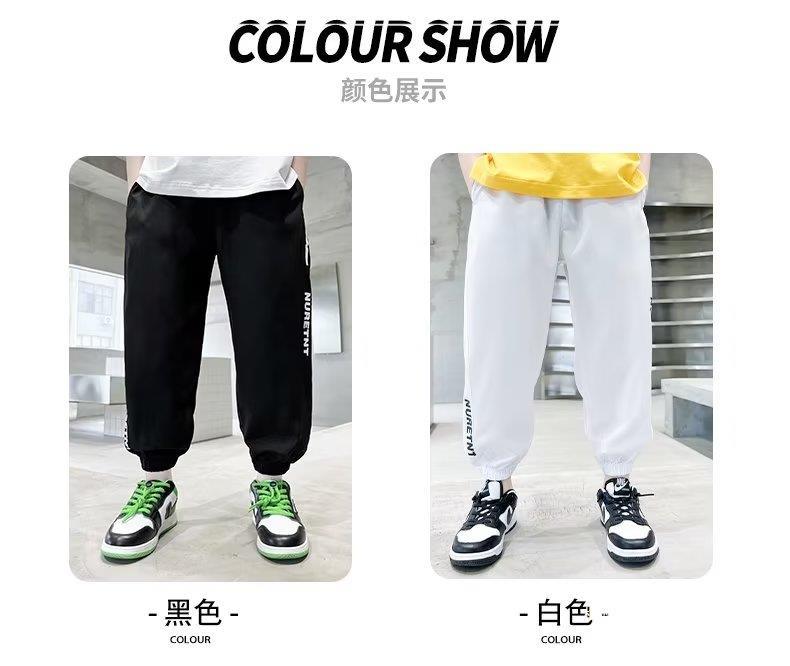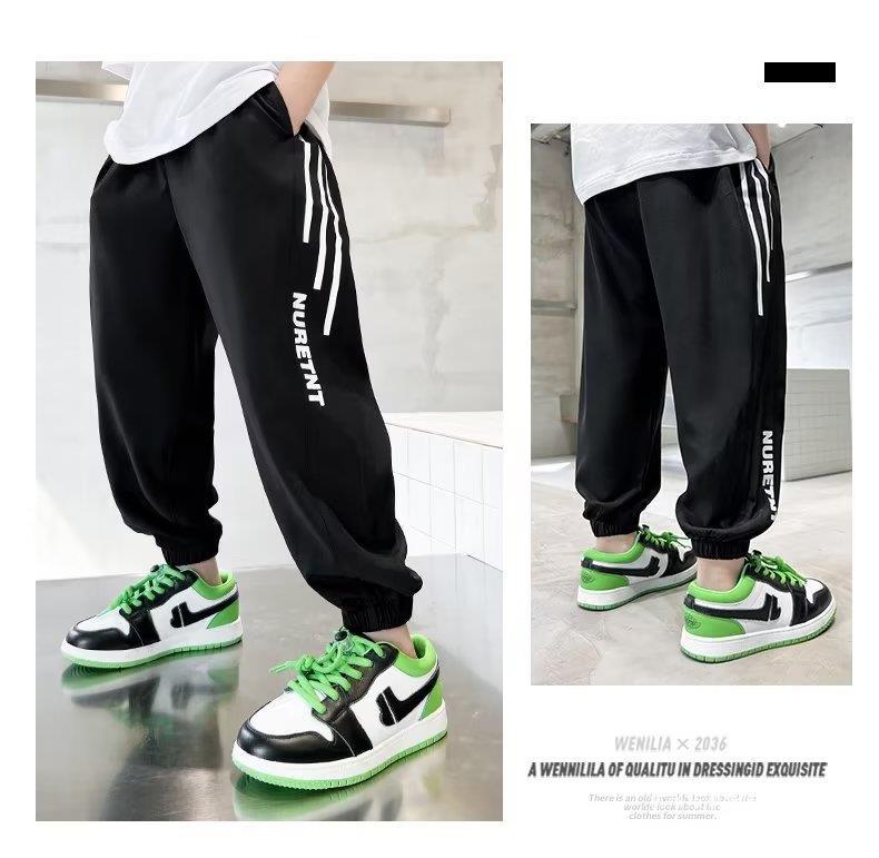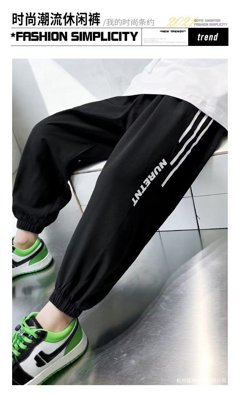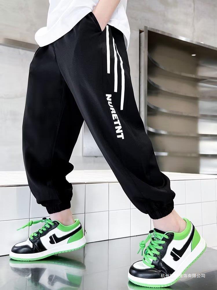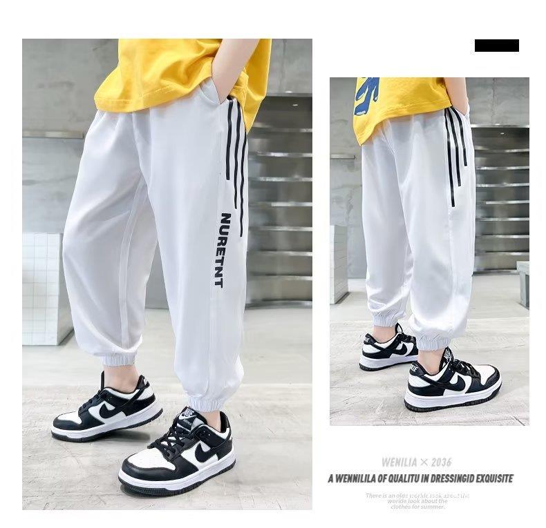 남아 속건 바지 큰 어린이 여름 흰색 스포츠 바지 아이스 실크 어린이 봄과 가을 유행 잘 생긴 유행 캐주얼 바지스토어 가기