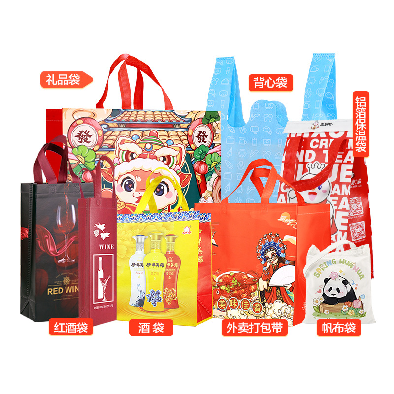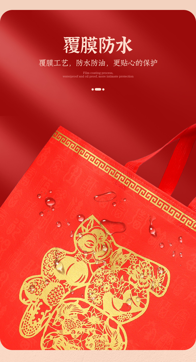 2026년 뱀의 해 신상 부직포 선물 가방 인쇄 로고 새해 포장 코팅 핸드백 도매 추가 인쇄