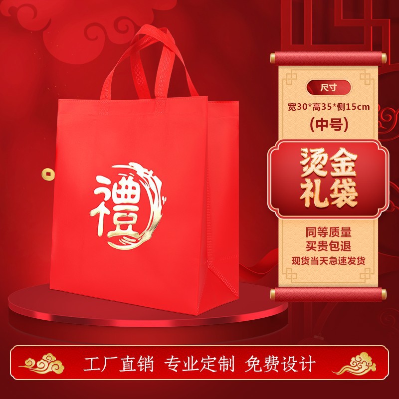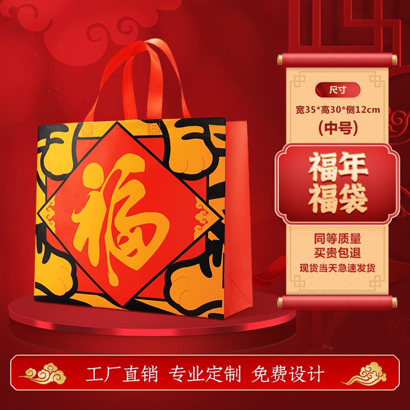 2026년 뱀의 해 신상 부직포 선물 가방 인쇄 로고 새해 포장 코팅 핸드백 도매 추가 인쇄스토어 가기