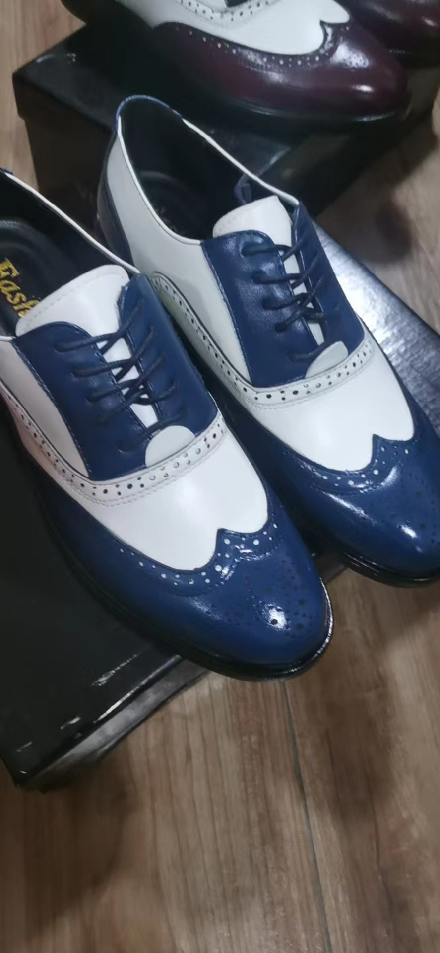 국경 간 남성 신발 새로운 브로그 조각 대형 컬러 매칭 유행 다목적 젊은 남성 비즈니스 정장 가죽 신발 남성스토어 가기