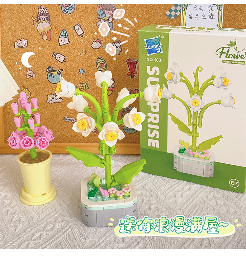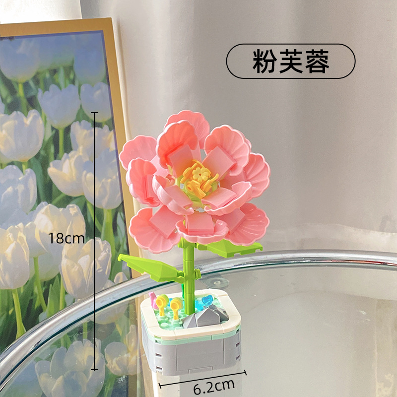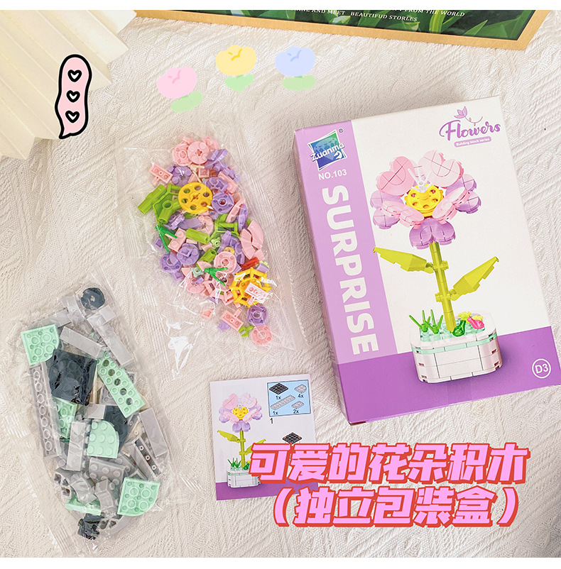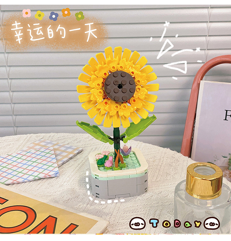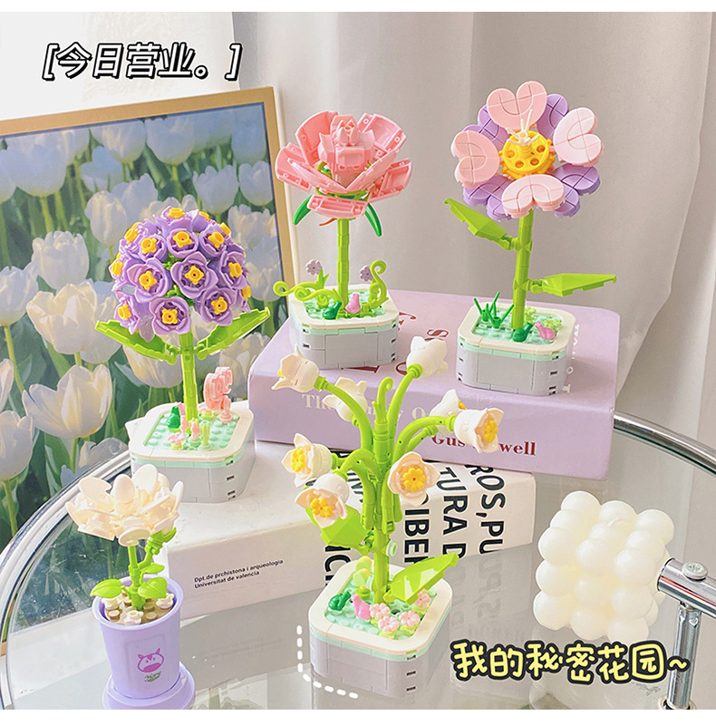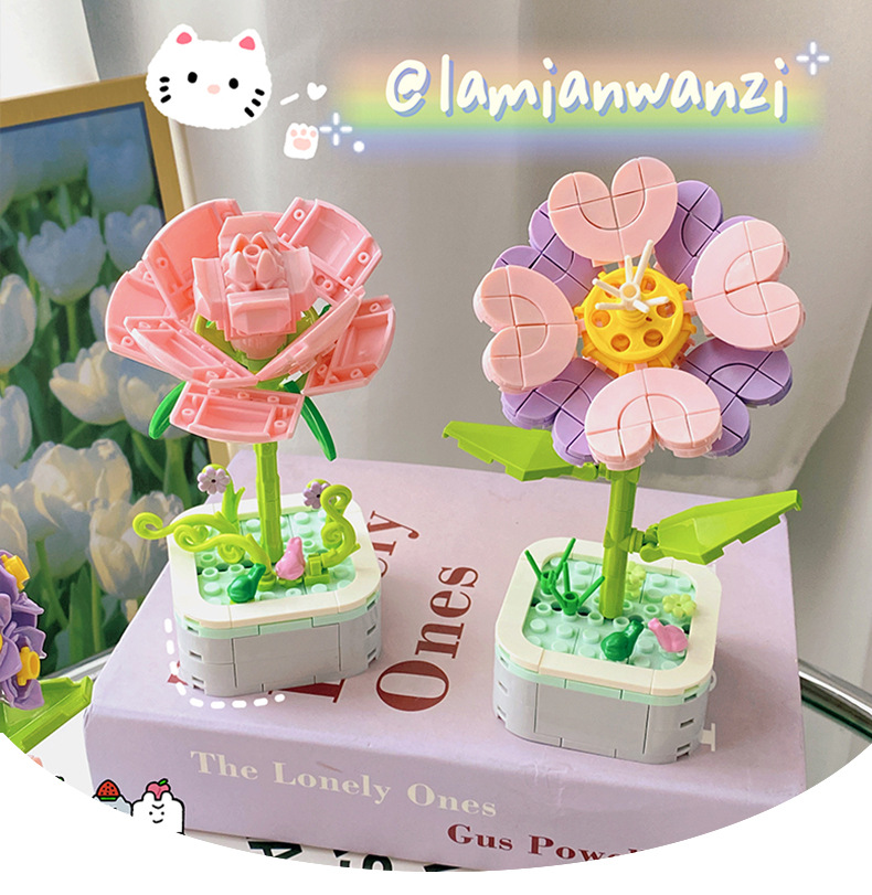 창조적 인 어린이 조립 꽃 빌딩 블록 꽃 꽃다발 조립 퍼즐 빌딩 블록 화분에 심은 영원한 꽃 식물 생일 선물스토어 가기