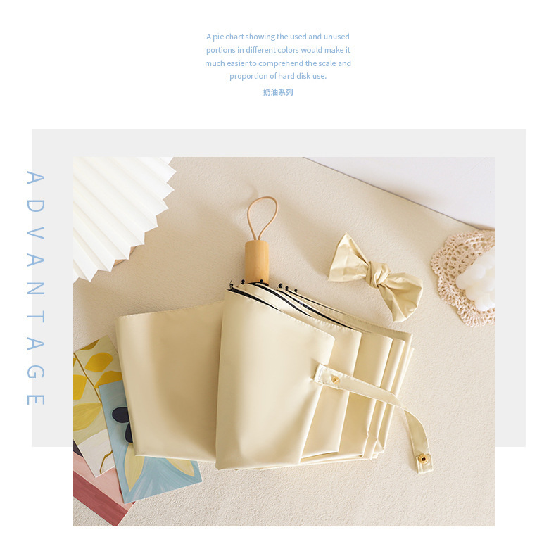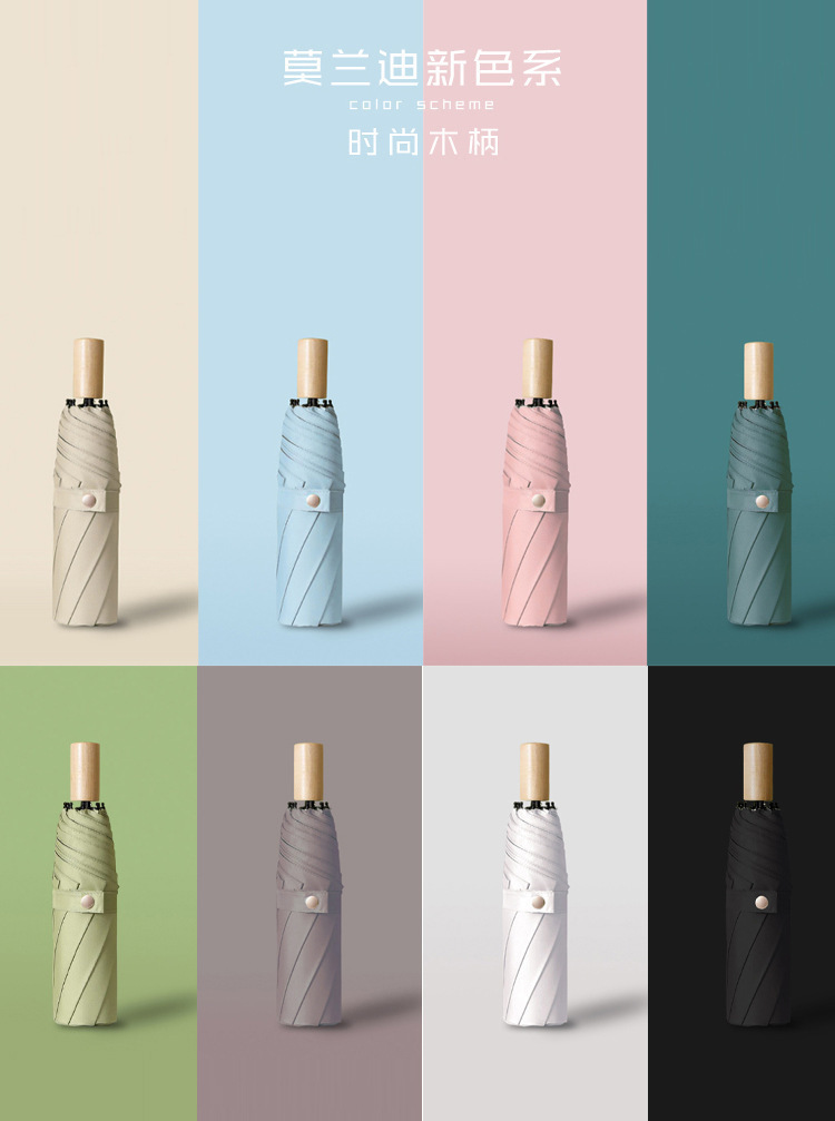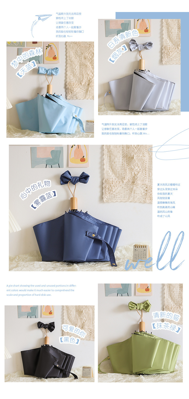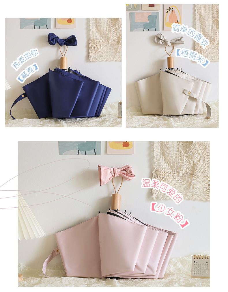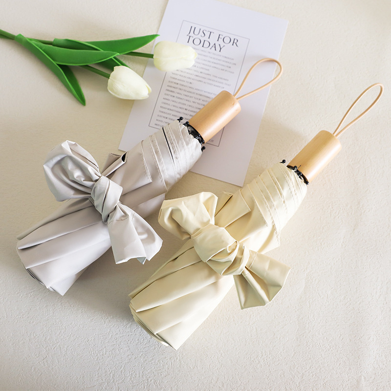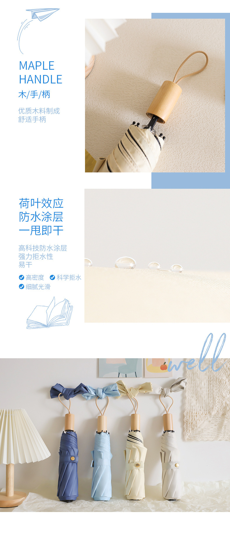 8 뼈 나무 손잡이 접는 우산 두꺼운 검은 고무 자외선 차단제 태양 우산 여자의 맑고 비오는 이중 사용 선물 우산 사용자 정의 로고 도매
