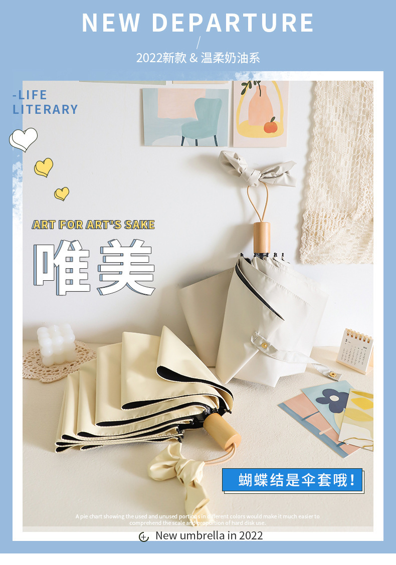 8 뼈 나무 손잡이 접는 우산 두꺼운 검은 고무 자외선 차단제 태양 우산 여자의 맑고 비오는 이중 사용 선물 우산 사용자 정의 로고 도매스토어 가기