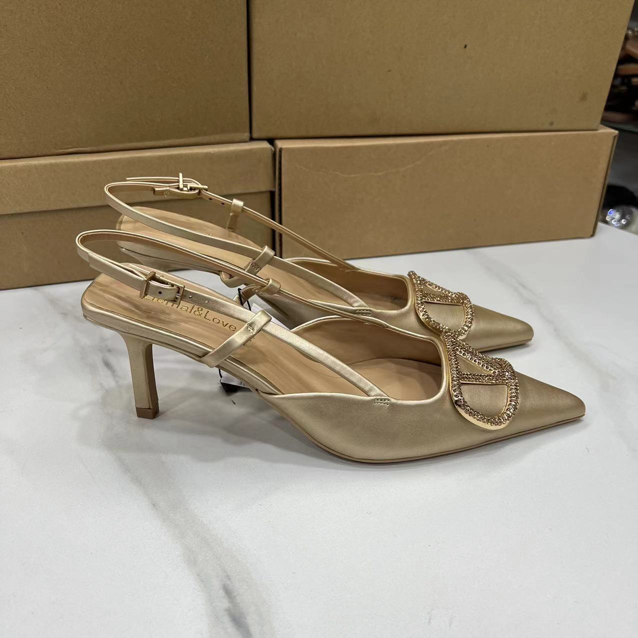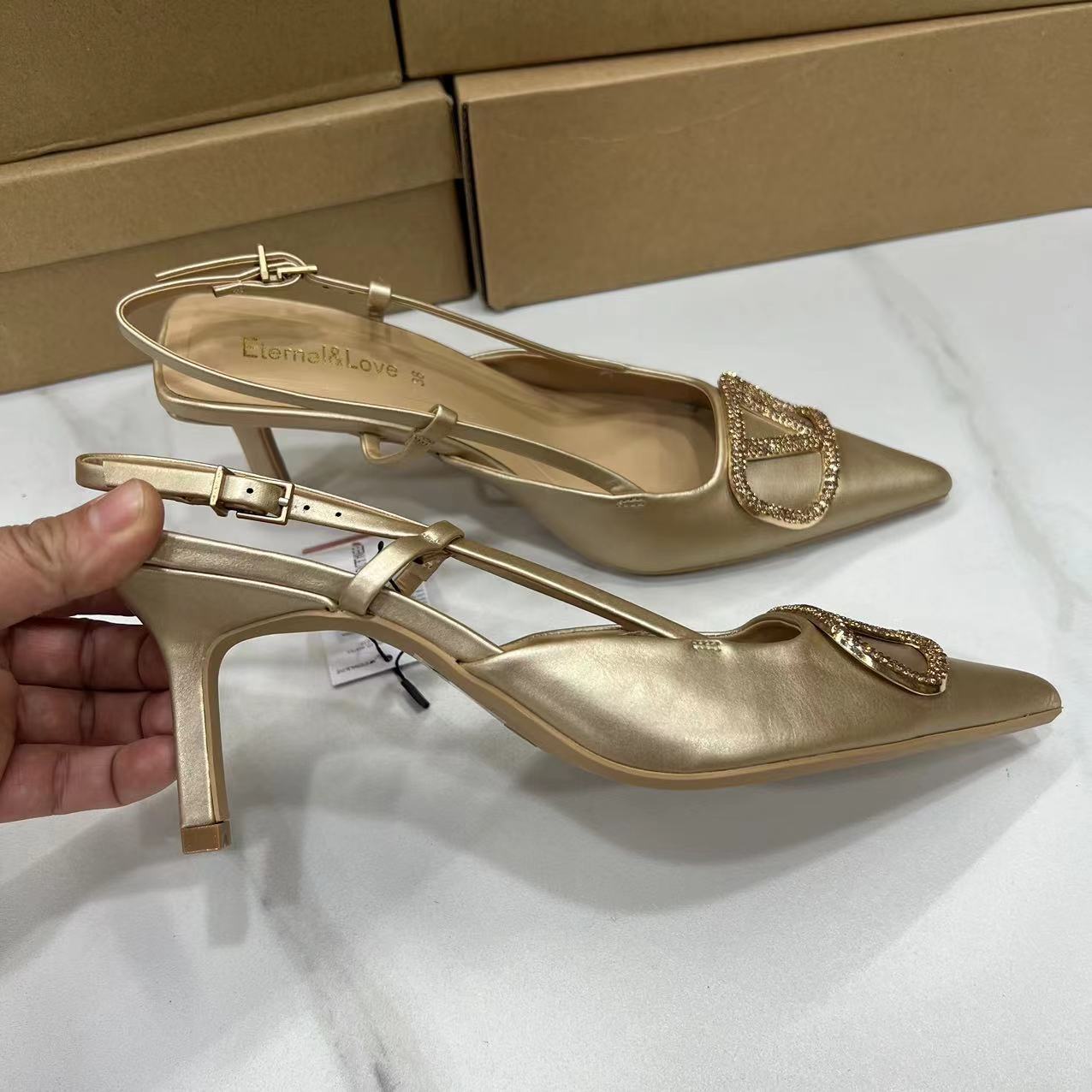 대외 무역 원래 새로운 여성 신발 금속 V 트렌디 한 얕은 입 포인팅 여성 버클 하이힐스토어 가기