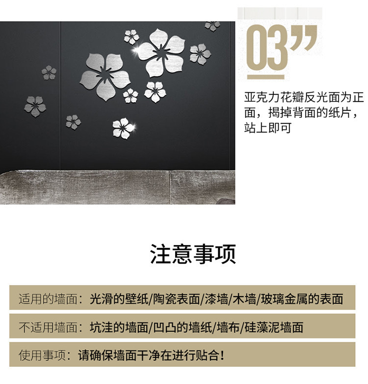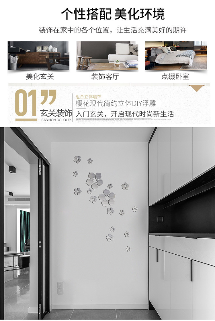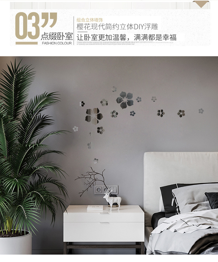 벚꽃 아크릴 입체 벽 스티커 거실 침실 TV 배경 벽 욕실 거울 장식 입체 장식