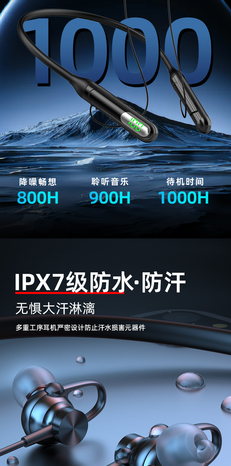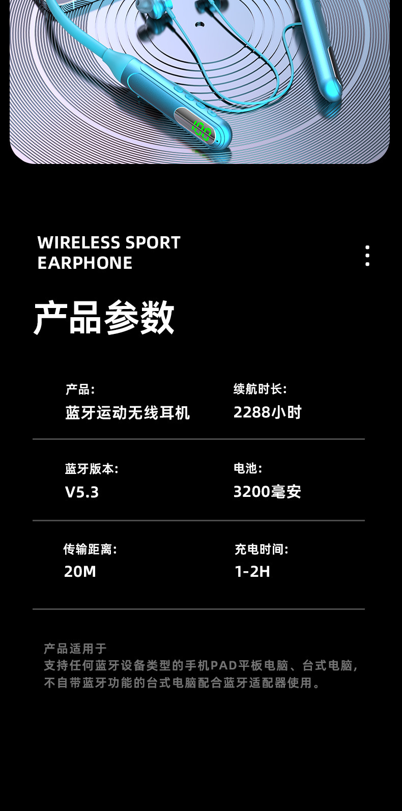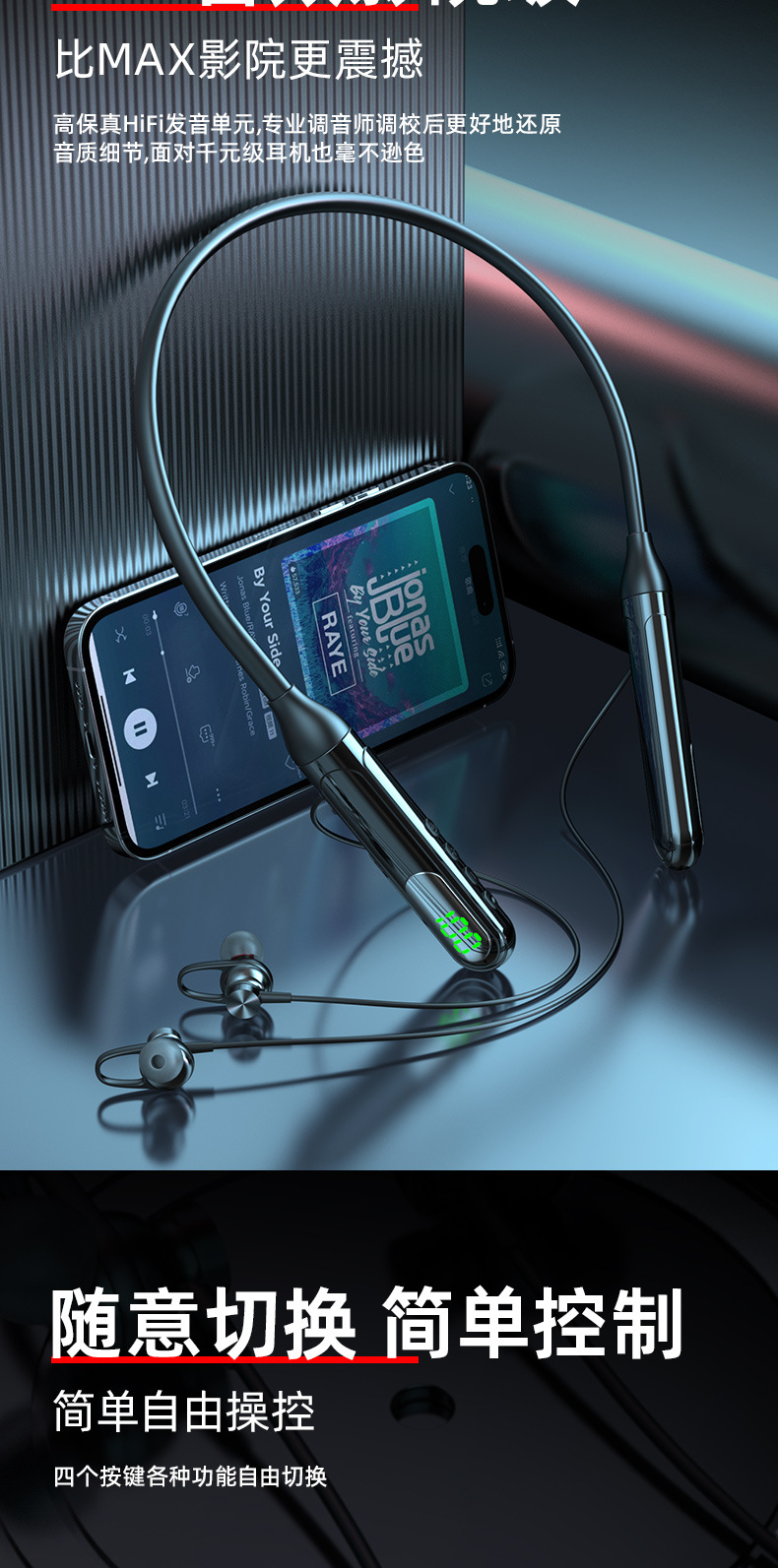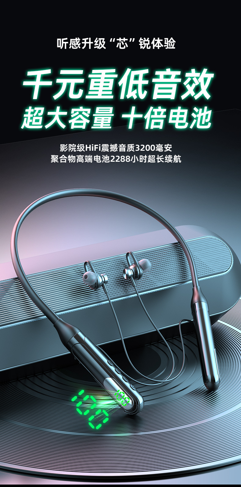 블루투스 이어폰 넥밴드 대용량 배터리 해외직구 라이브 방송 이어후크형 디지털 디스플레이 전용 게이밍 저지연 게이밍 스타일