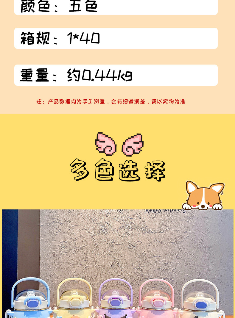 대용량 만화 어린이 보온병 컵 하이 컬러 값 산리오 스트랩 배꼽 빨대 컵 야외 크로스 바디 마시는 주전자스토어 가기