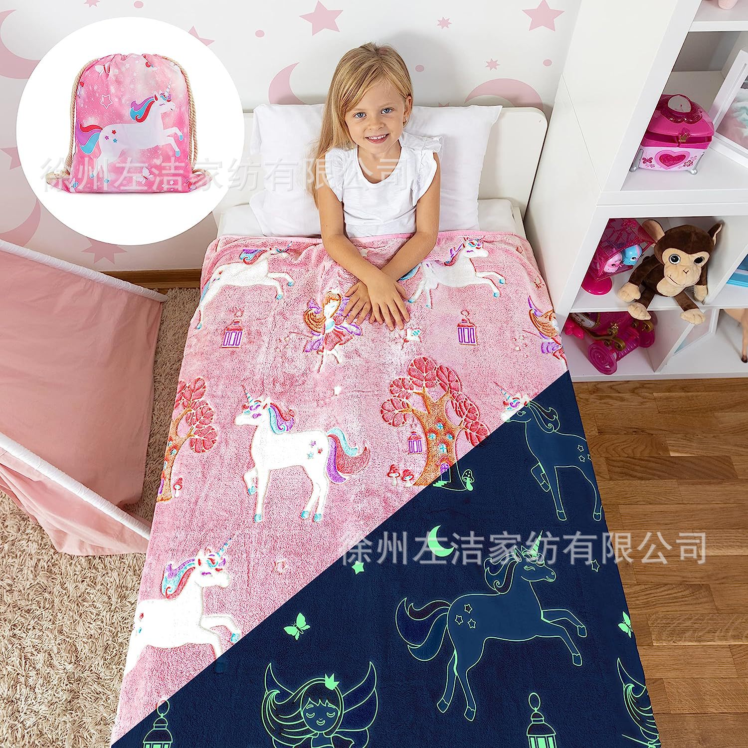 유니콘 담요 부드러운 핑크 울은 소녀를위한 선물로 생일 아기 유아에게 완벽합니다!