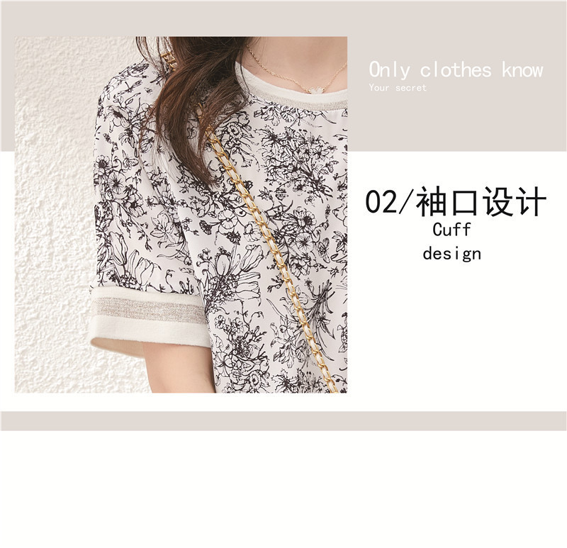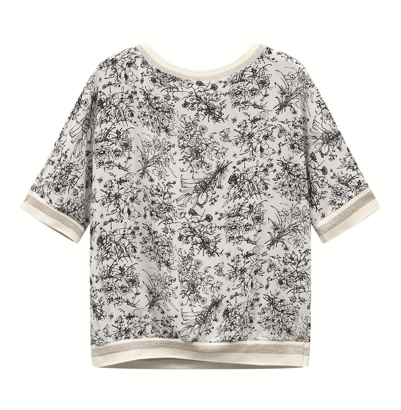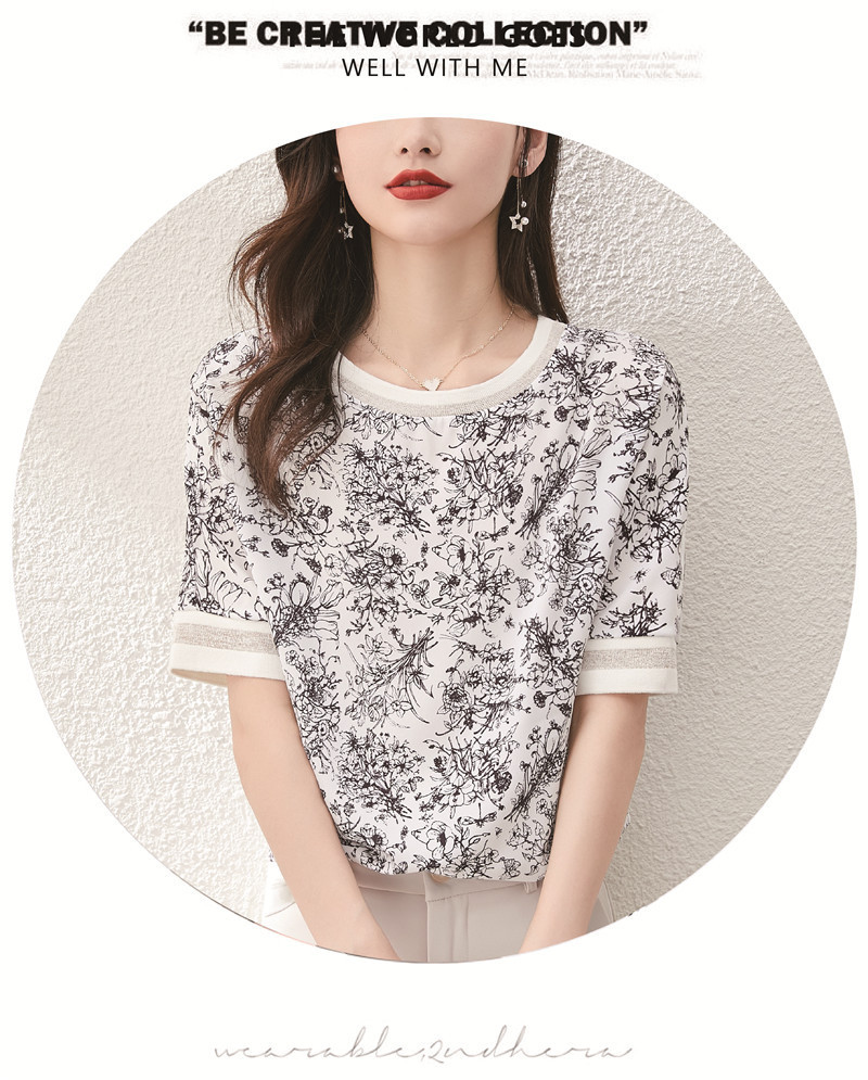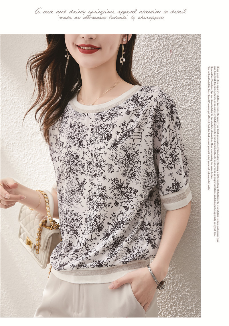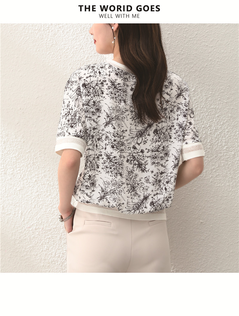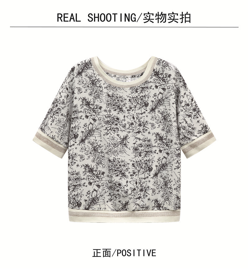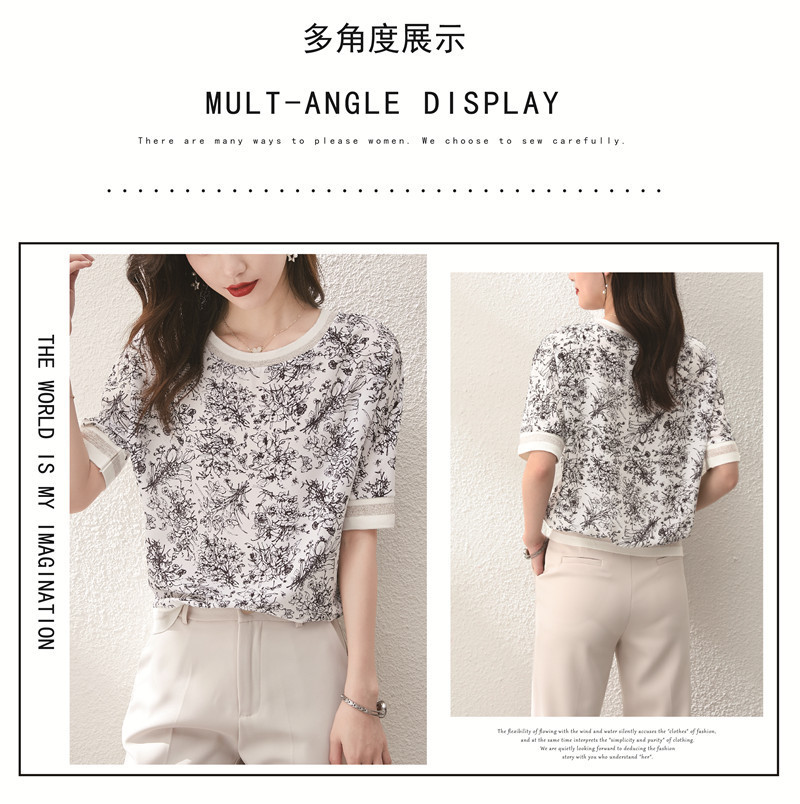 시폰 셔츠 티셔츠 여성 중간 소매 여름 여성 의류 2025 새로운 느슨한 버전 중국 스타일 잉크 인쇄 탑