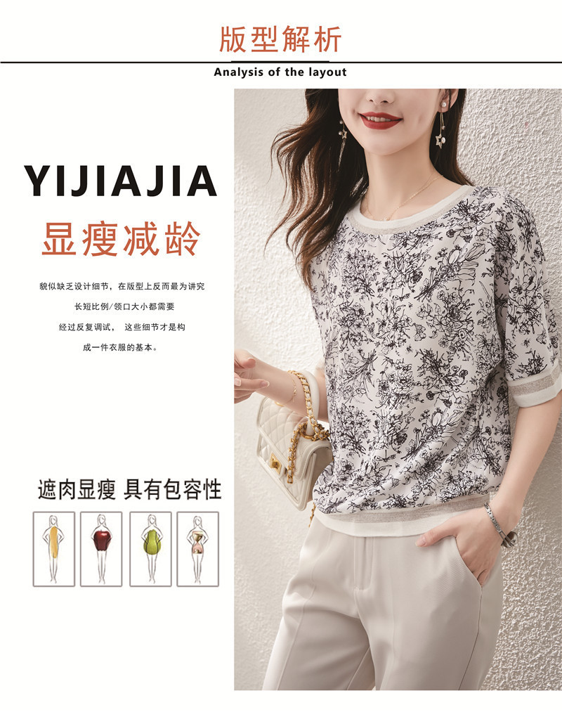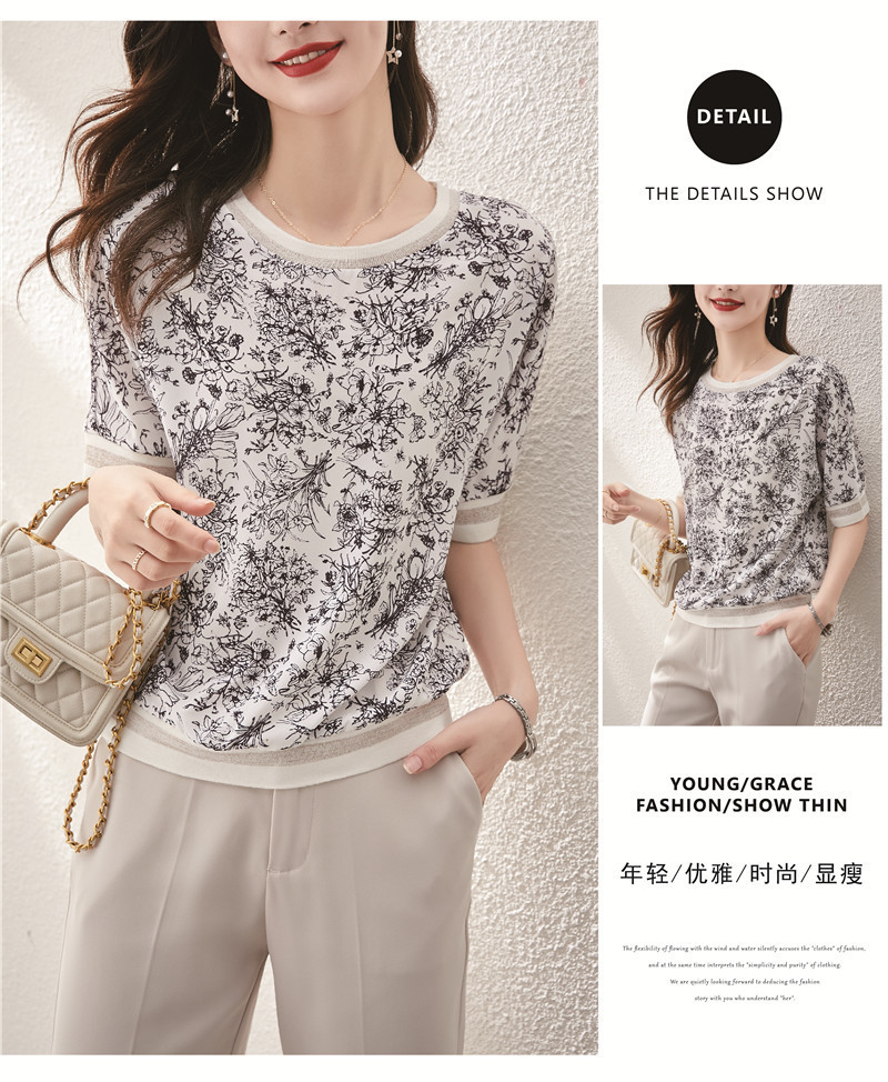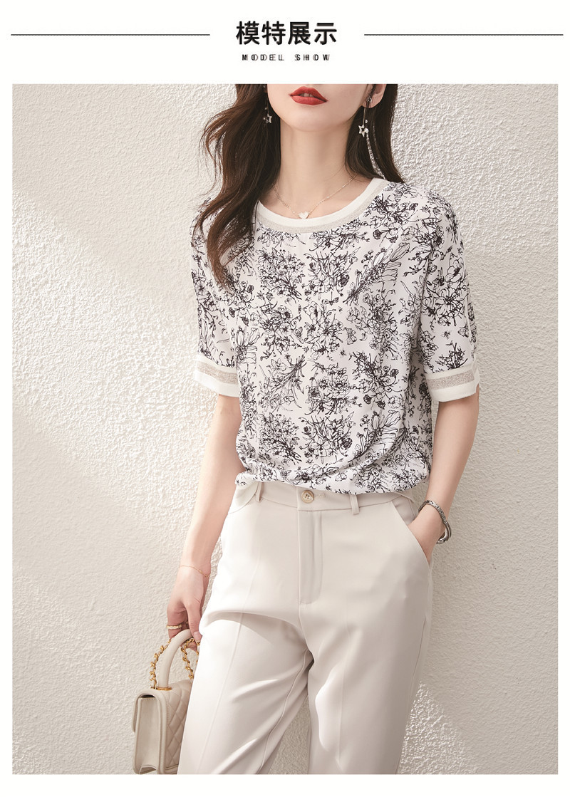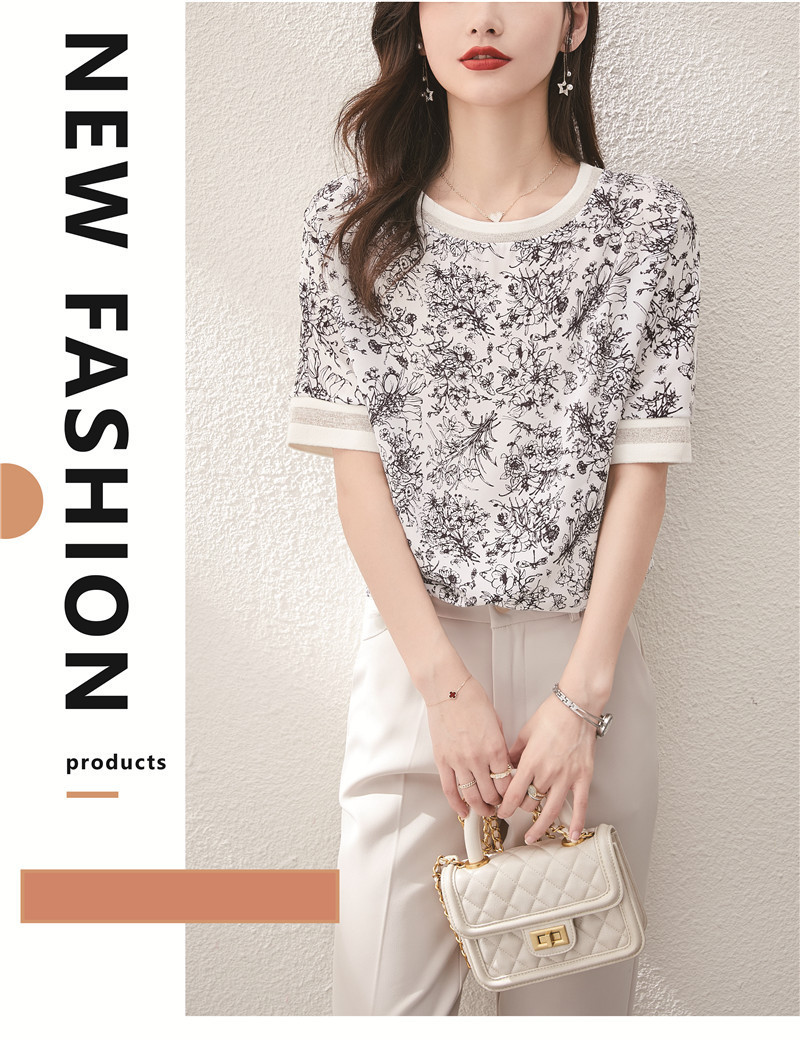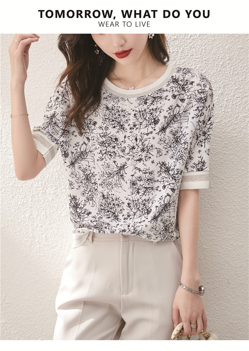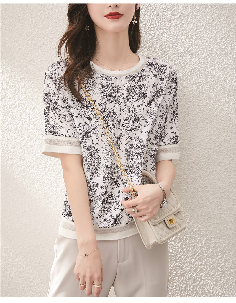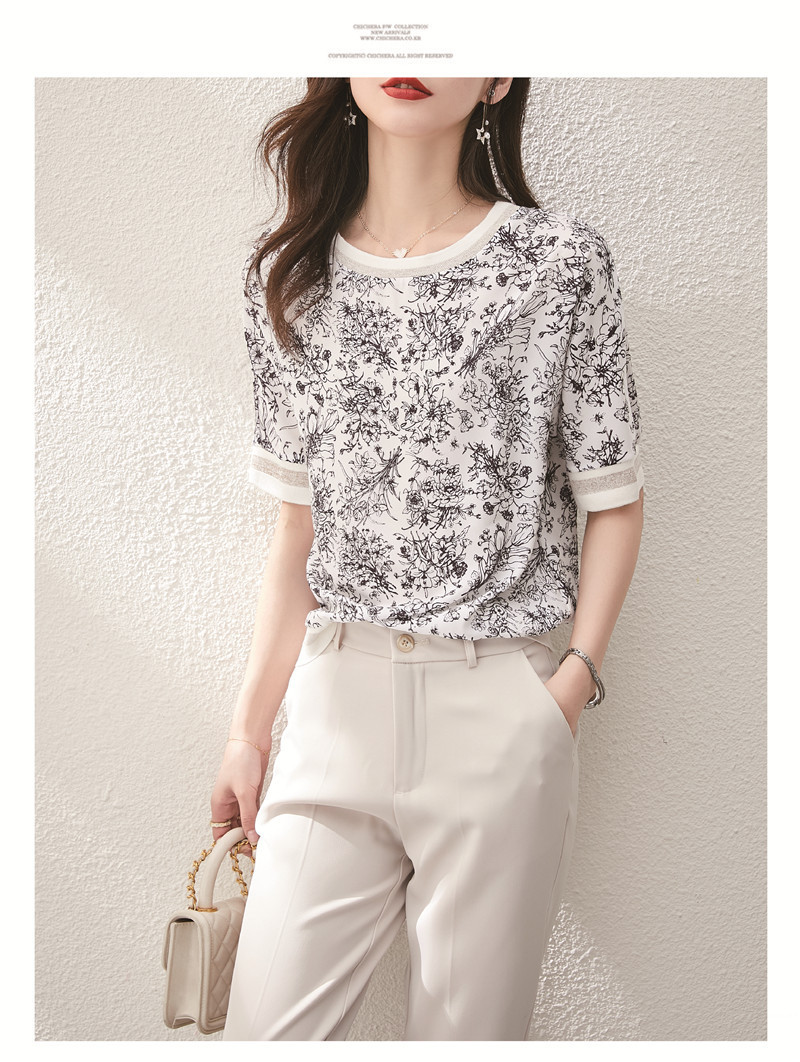 시폰 셔츠 티셔츠 여성 중간 소매 여름 여성 의류 2025 새로운 느슨한 버전 중국 스타일 잉크 인쇄 탑