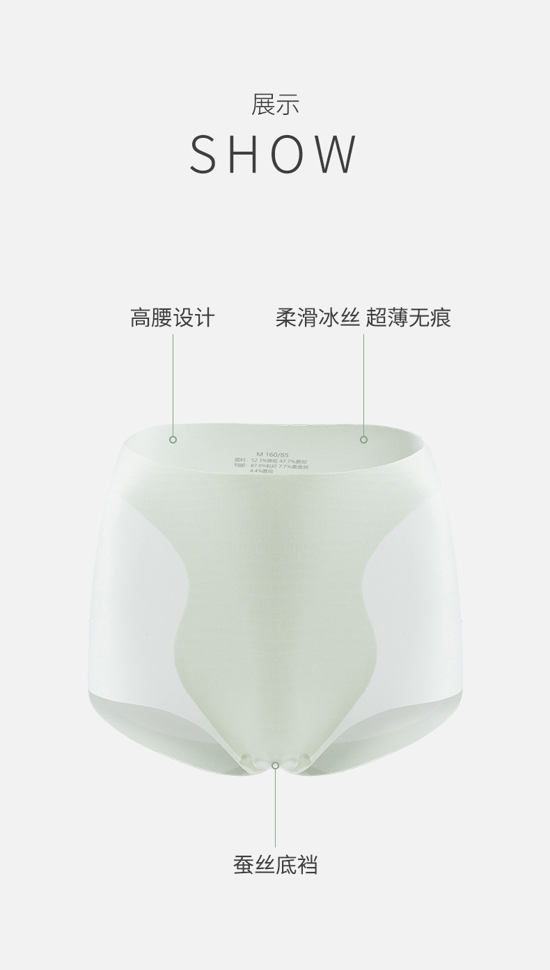 여성용 하이 웨이스트 배꼽 집어 넣는 속옷 아이스 실크 비 마킹 뽕나무 실크 항균 통기성 속건 여름 얇은 엉덩이 리프팅 팬티스토어 가기