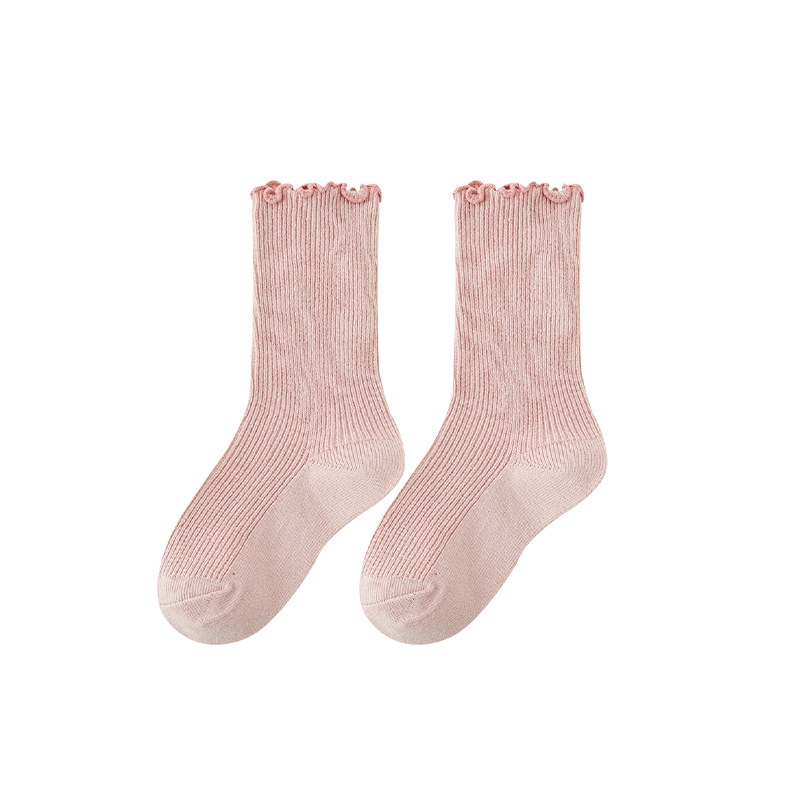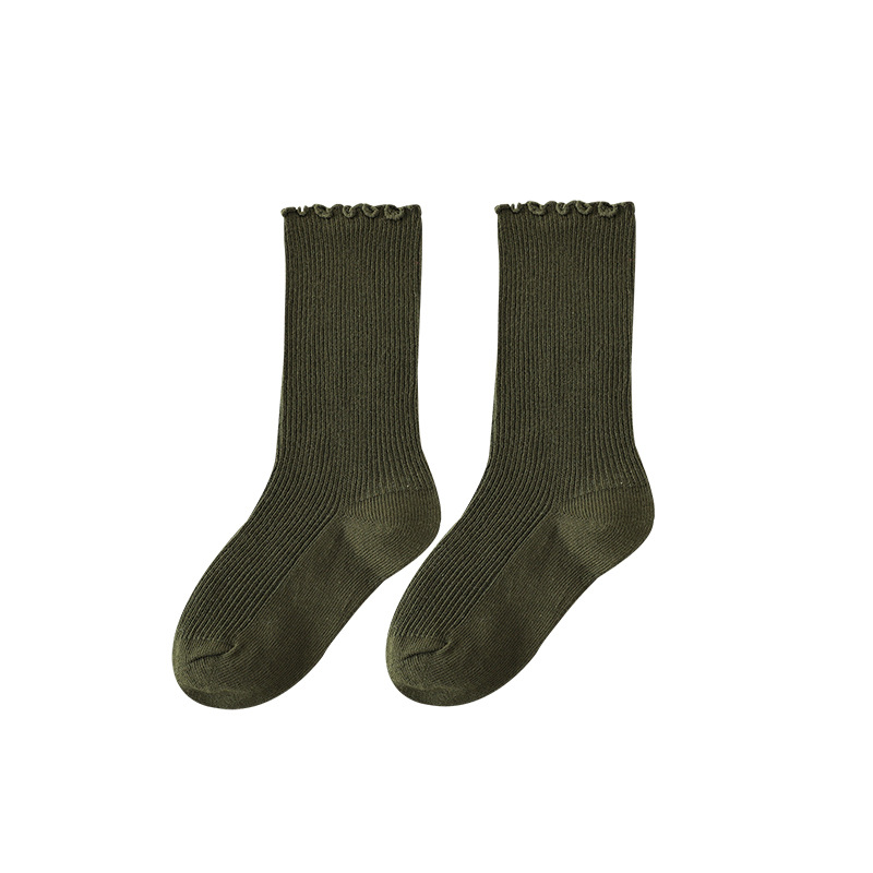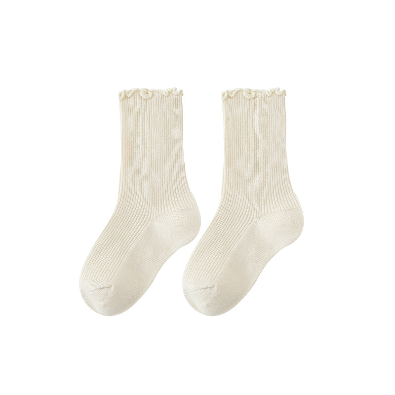 치우두 멩 여아용 러플 양말 어린이 레이스 패턴 중간 길이 양말 2025 봄 가을 신상 아기 양말스토어 가기