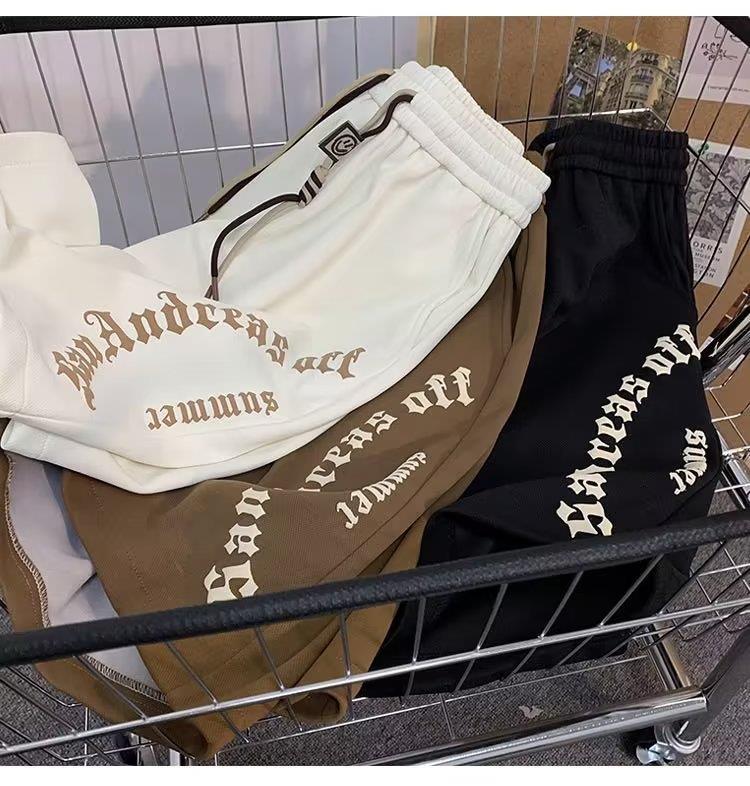 새로운 단색 패션 트렌디 브랜드 카고 바지 남성 여름 캐주얼 바지 청소년 인기 스트레이트 트렌디 반바지 루즈한 유형스토어 가기