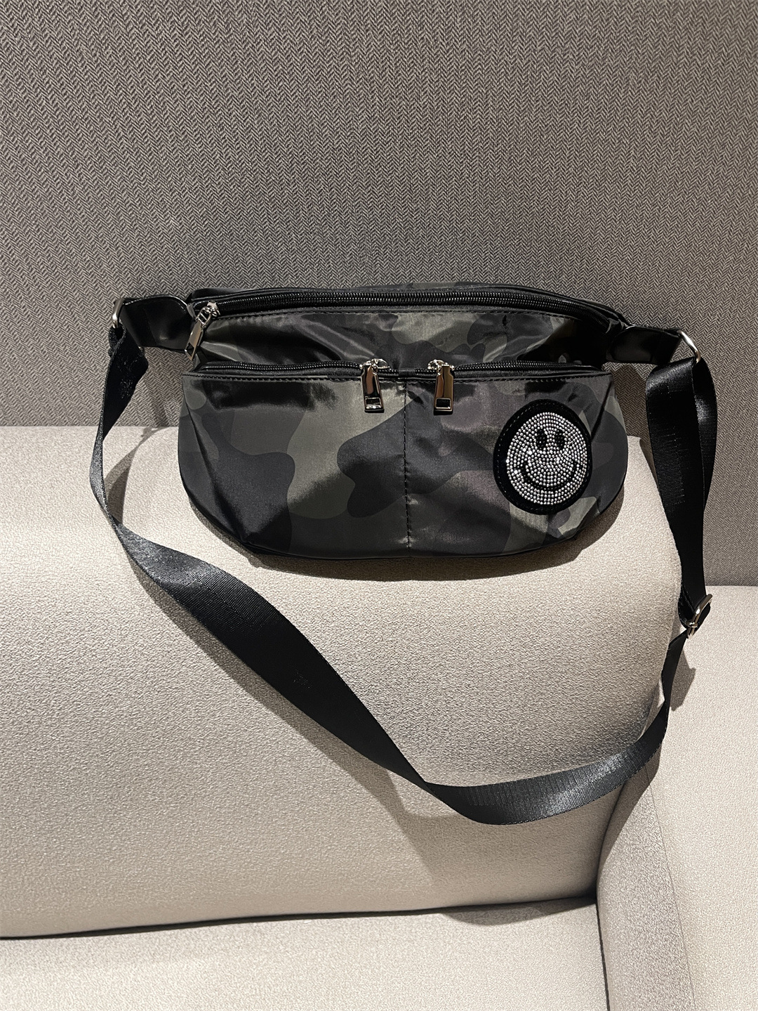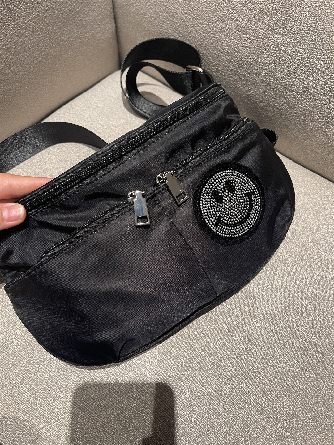 새로운 스마일 페이스 반원 안장 가방 여성용 다층 캐주얼 모든 매치 쉘 가방 방수 경량 나일론 천 크로스 바디 백