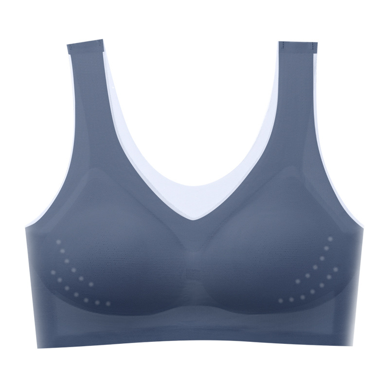 여름 초박형 아이스 실크 원활한 속옷 여성용 얇은 통기성 원피스 아름다운 등 조끼 큰 가슴 작은 잠자는 브래지어스토어 가기