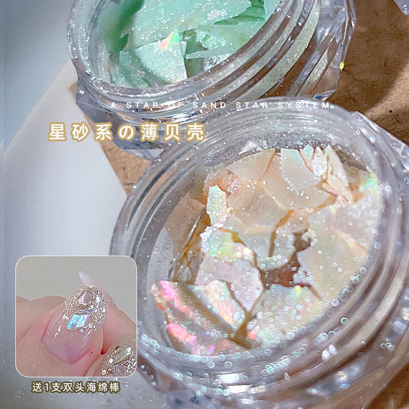 편광 매직 컬러 자연 불규칙한 얇은 쉘 네일 쥬얼리 고급 파우더 쉘 혼합 파우더 네일 패치 도매스토어 가기