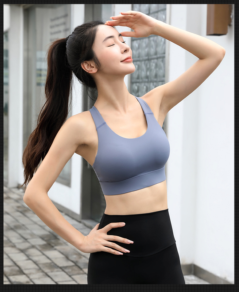 고정 컵 원피스 스포츠 속옷 여성용 수분 흡수 충격 방지 피트니스 요가 스포츠 브라 백 버튼 브라