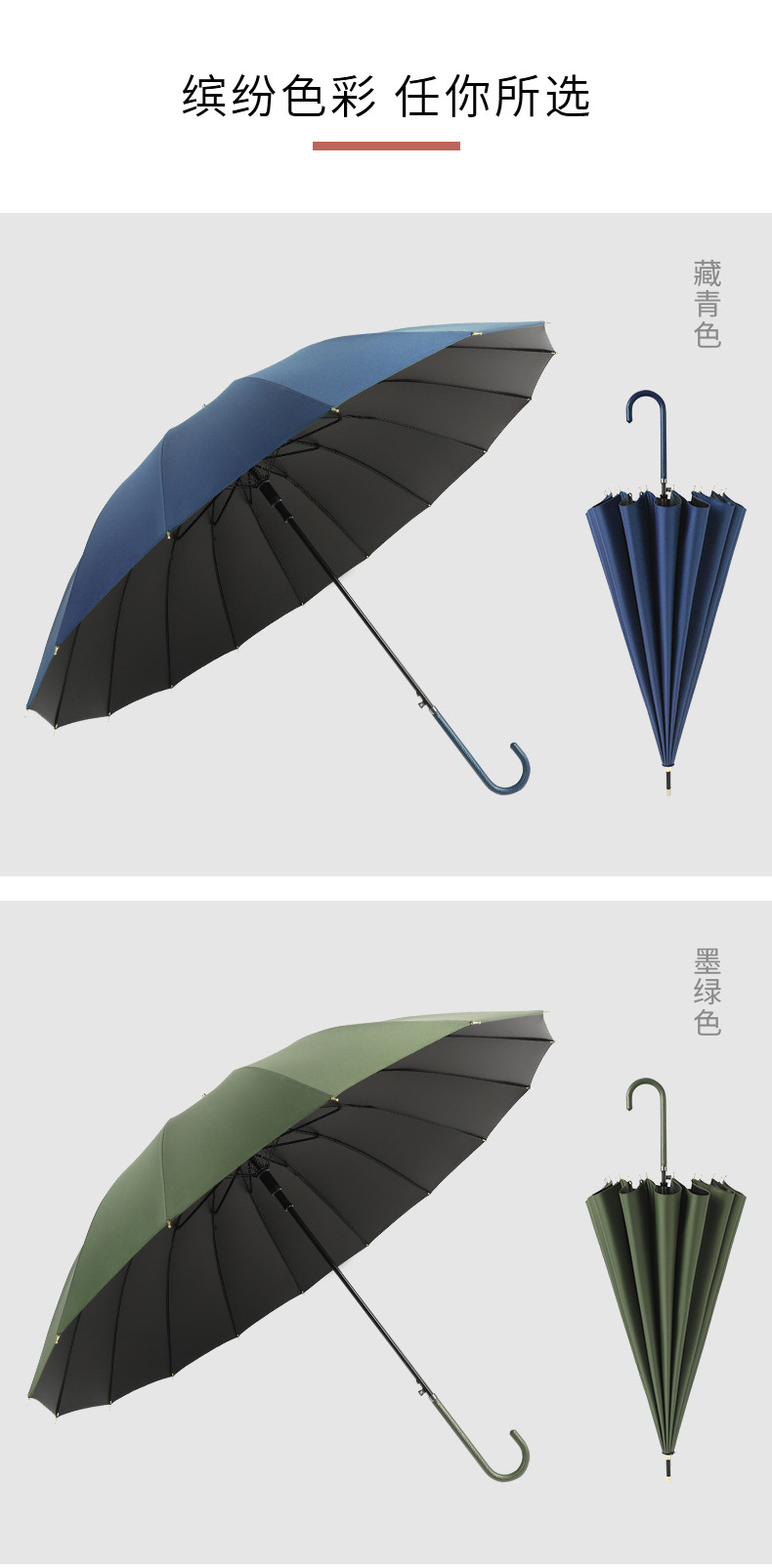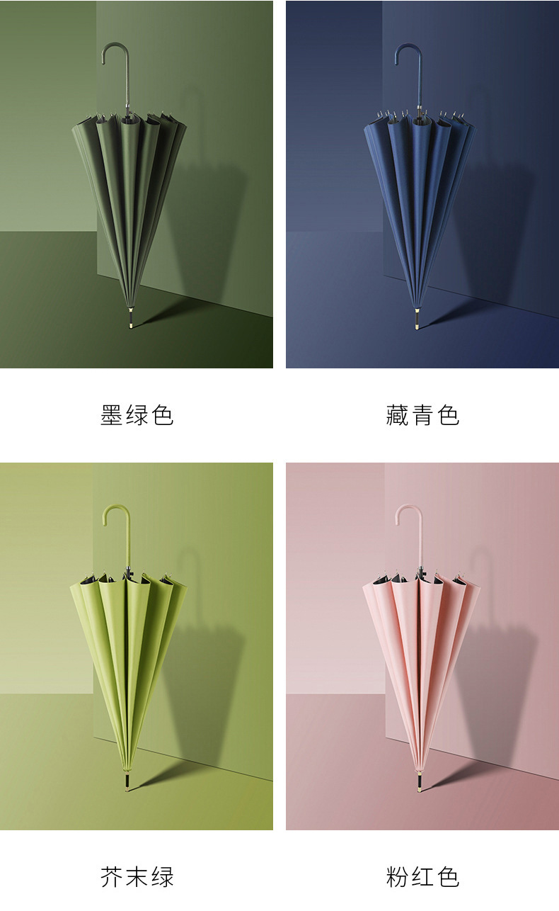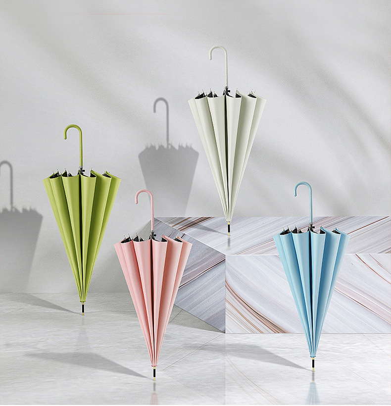 16 뼈 우산 곡선 핸들 스트레이트 우산 작은 신선한 차양 태양 우산 써니 우산 인쇄 가능한 로고 선물 우산스토어 가기