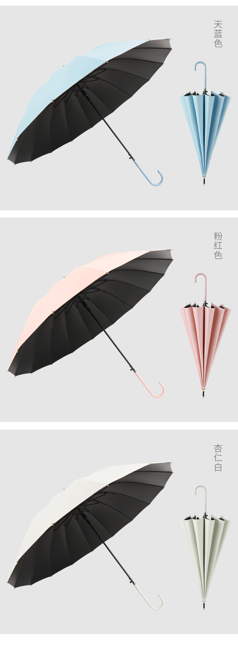 16 뼈 우산 곡선 핸들 스트레이트 우산 작은 신선한 차양 태양 우산 써니 우산 인쇄 가능한 로고 선물 우산