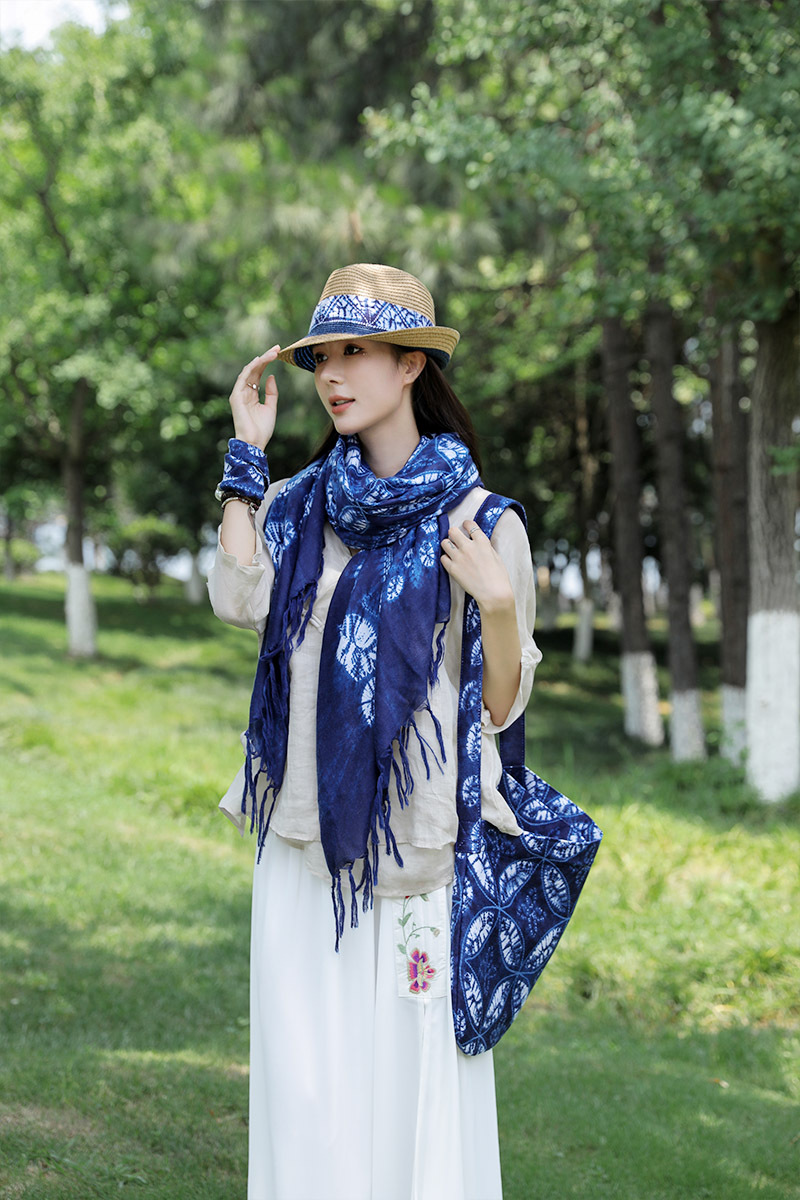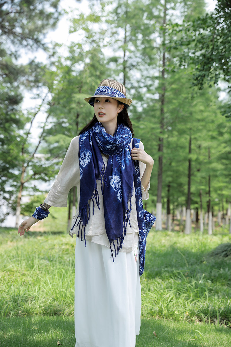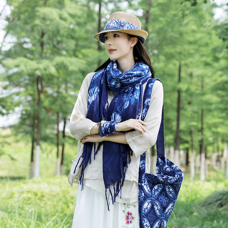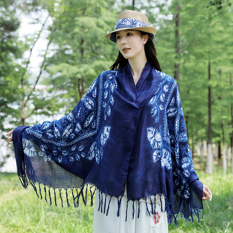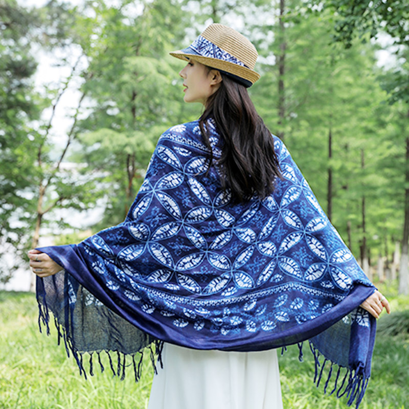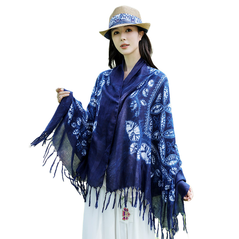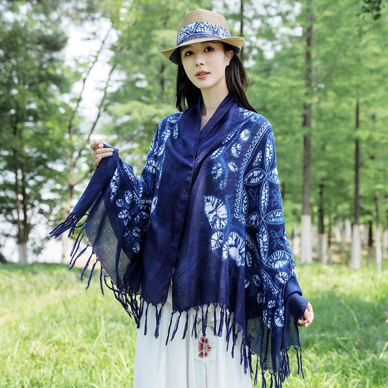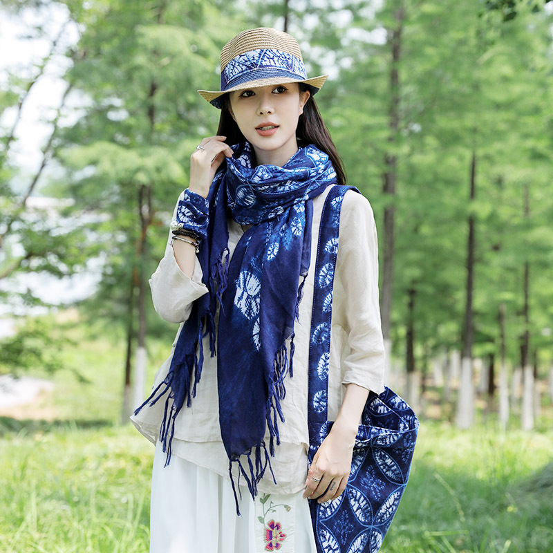 타이 염색 예술적 에스닉 스타일 스카프 윈난 관광 구리 인쇄 스카프 면 및 린넨 스카프 여성용 자외선 차단제 올 매치 숄