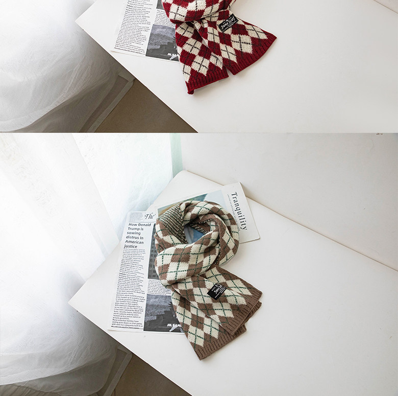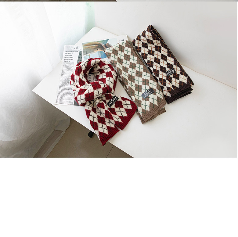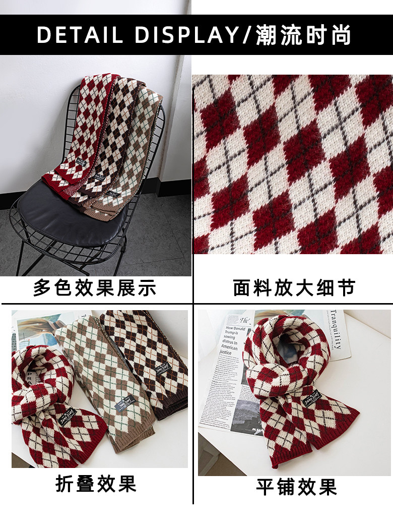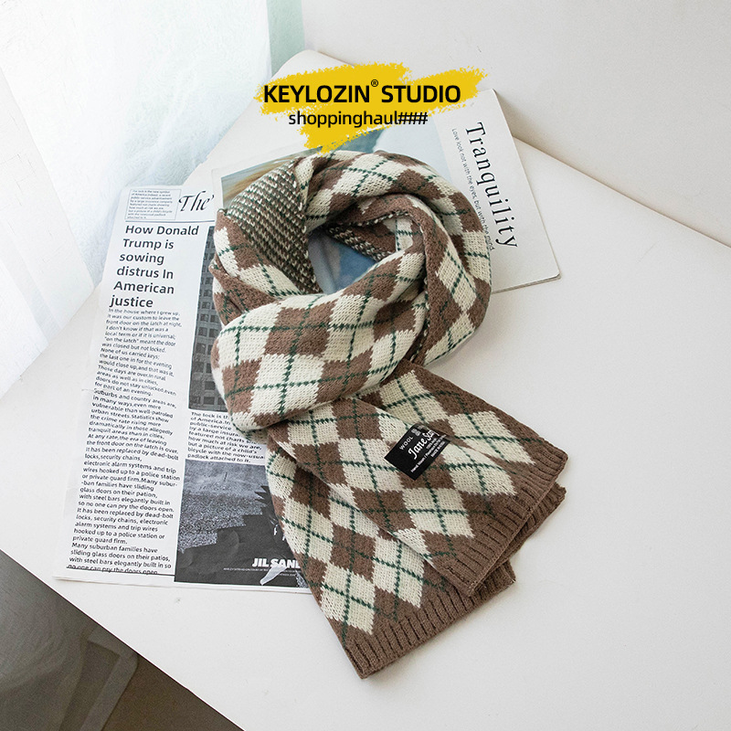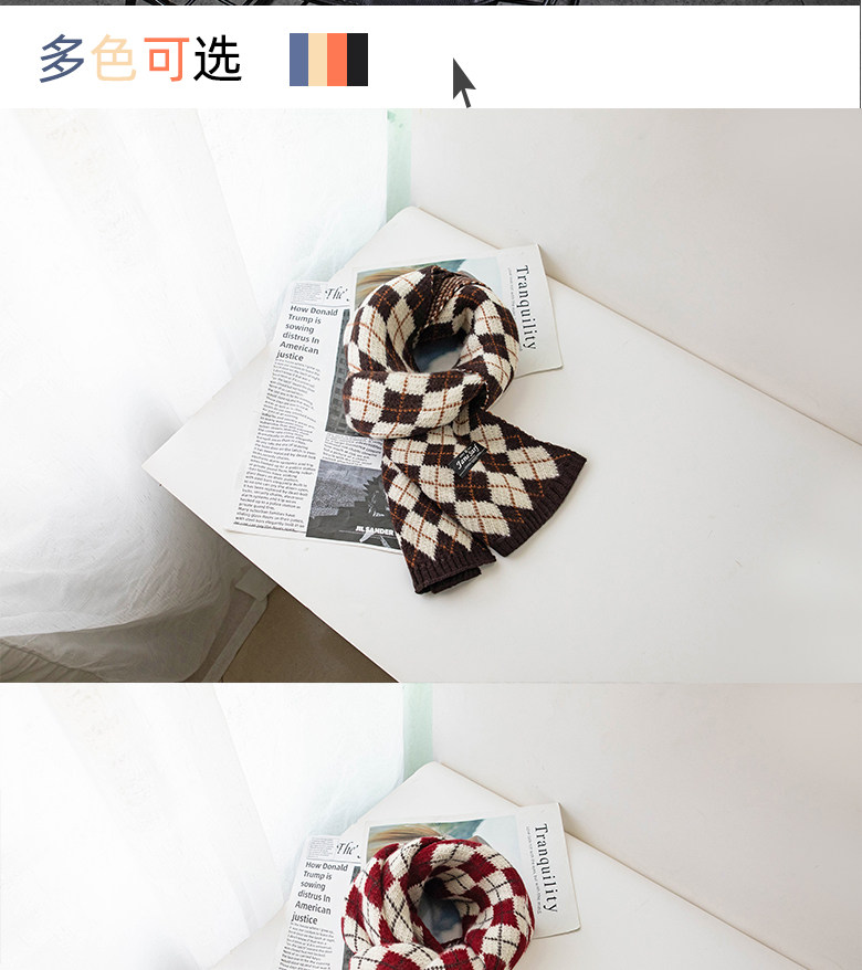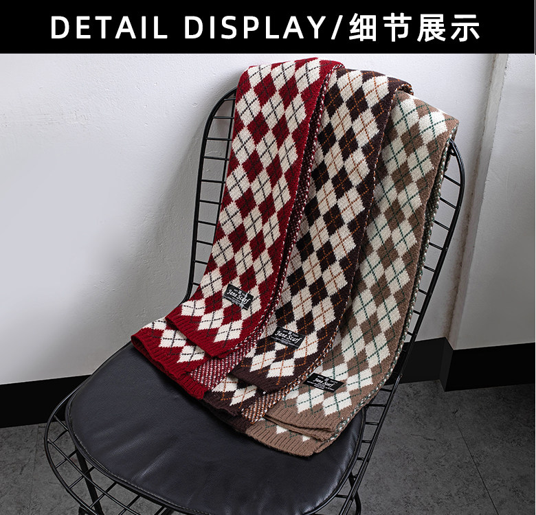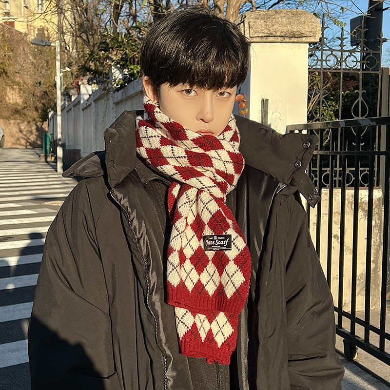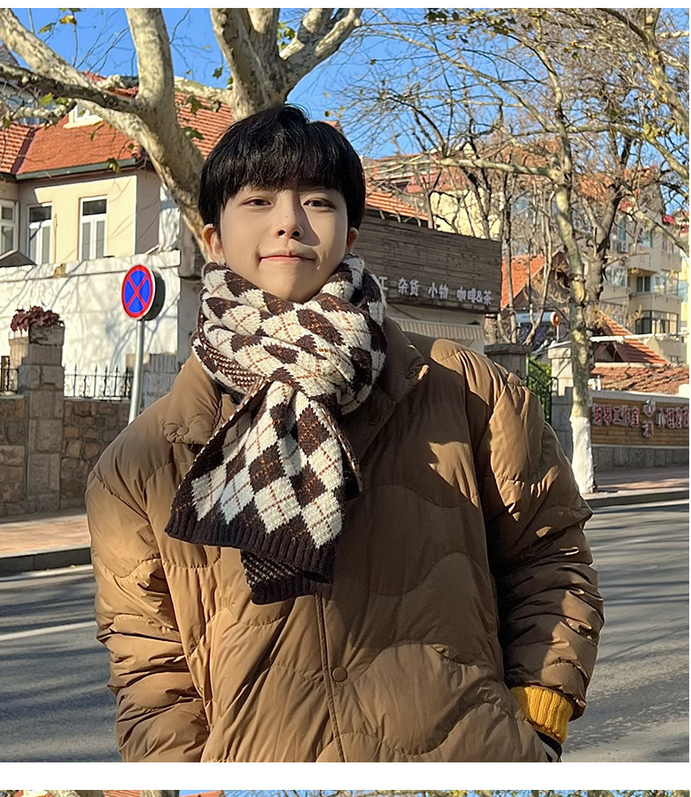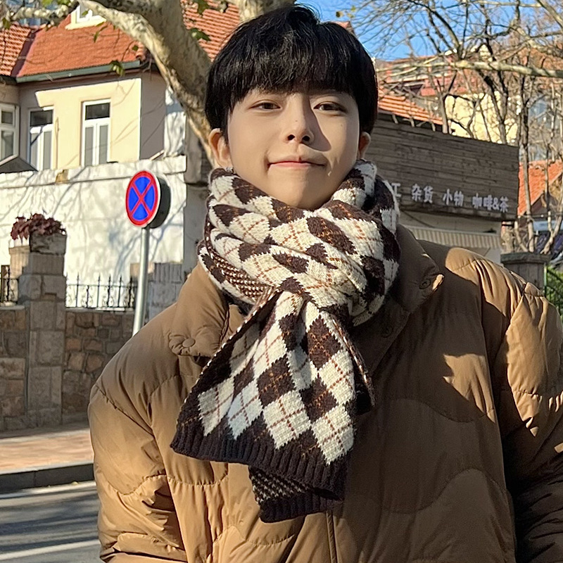 니트 스카프 남성용 체크무늬 가을 겨울 한국 스타일 학생용 보온 두꺼운 모직 니트 목도리 일본 스타일 2024 신상
