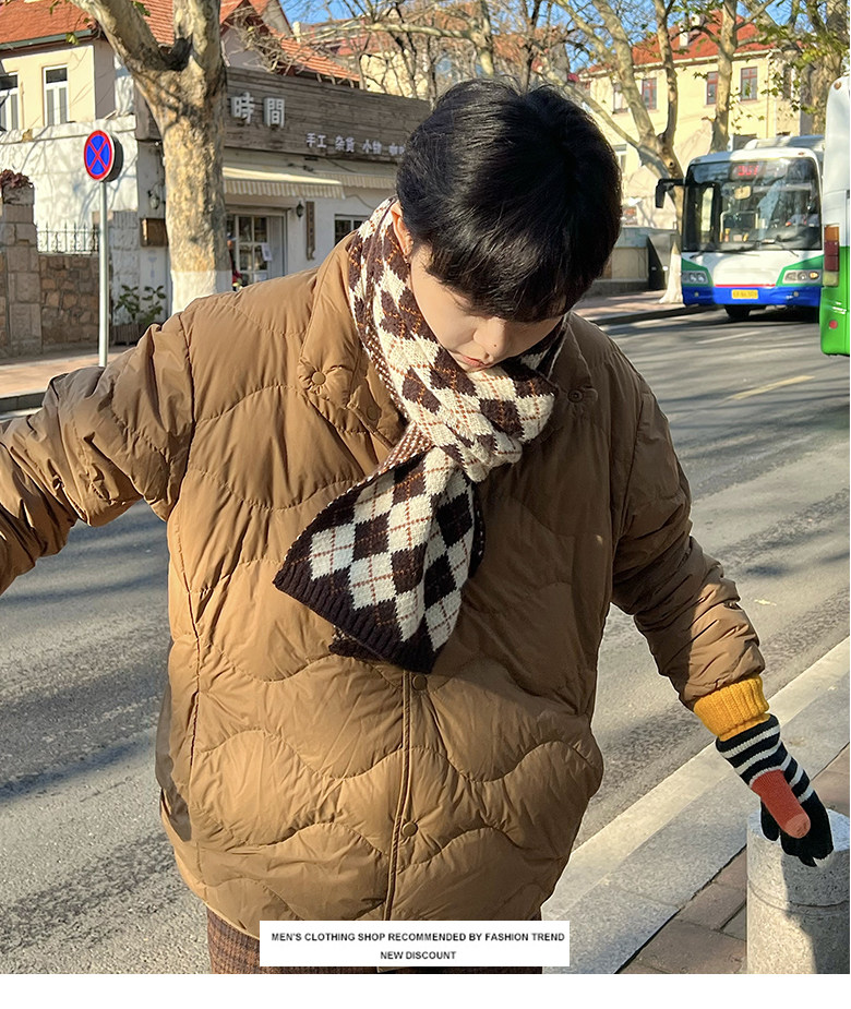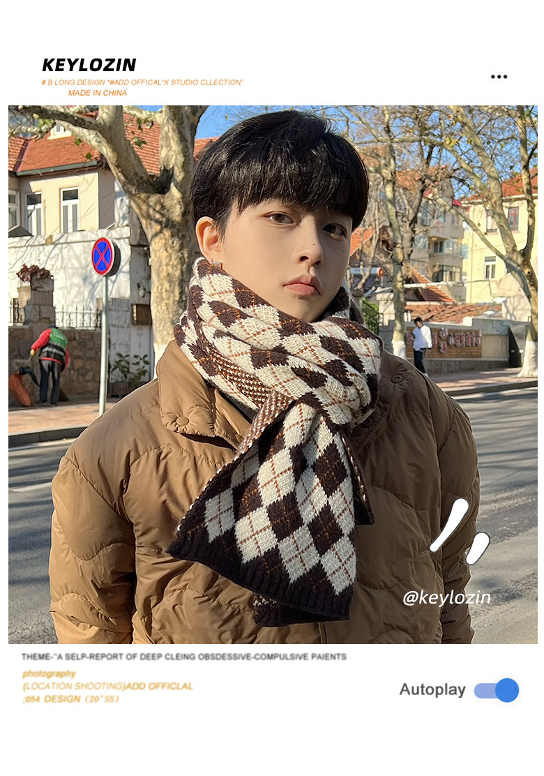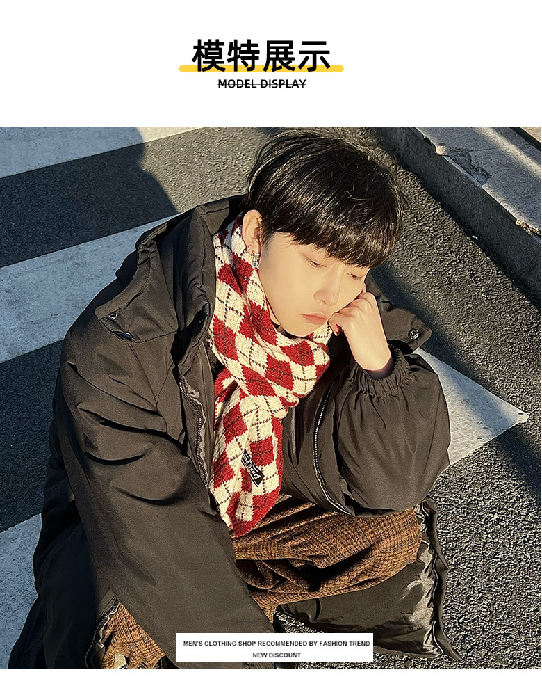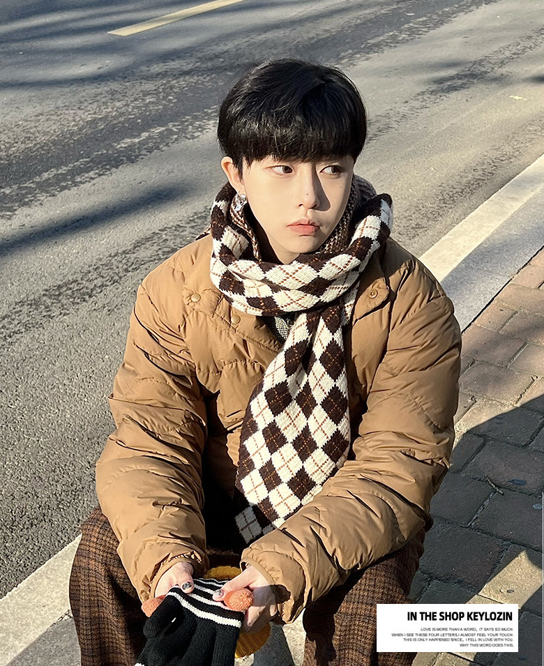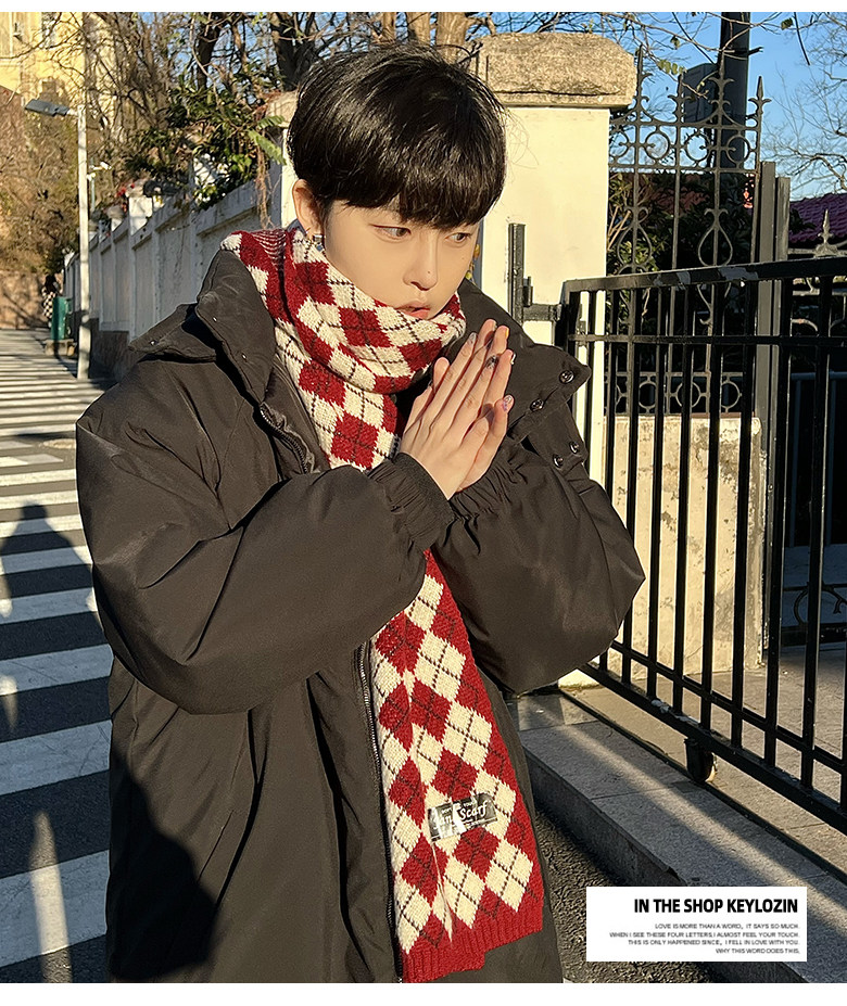 니트 스카프 남성용 체크무늬 가을 겨울 한국 스타일 학생용 보온 두꺼운 모직 니트 목도리 일본 스타일 2024 신상스토어 가기