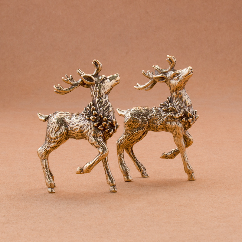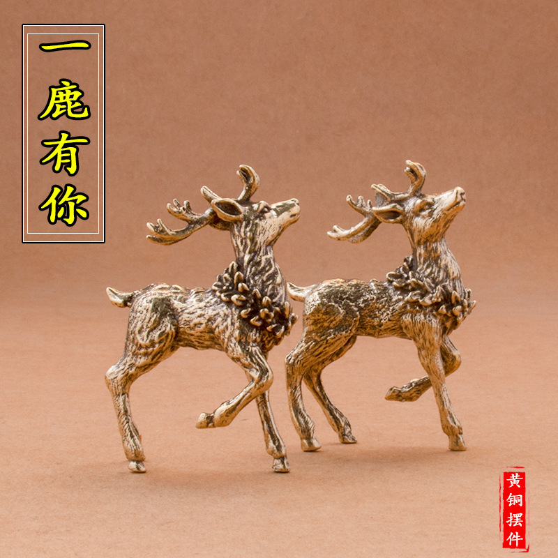 순수 황동 Sika 사슴 엘크 장식품 새끼 사슴 한 사슴이 있습니다 홈 사무실 데스크탑 차 애완 동물 장식 공예