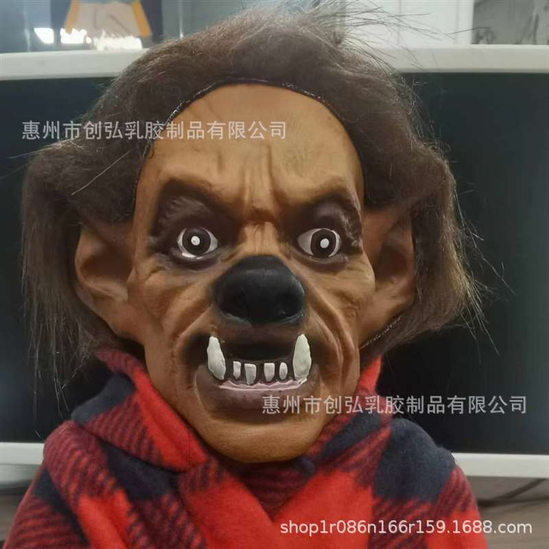 할로윈 동물 라텍스 거품 시뮬레이션 늑대 인간 장난감 헤드 기어 다크 브라운 헤어 소품 천 공포 인형스토어 가기