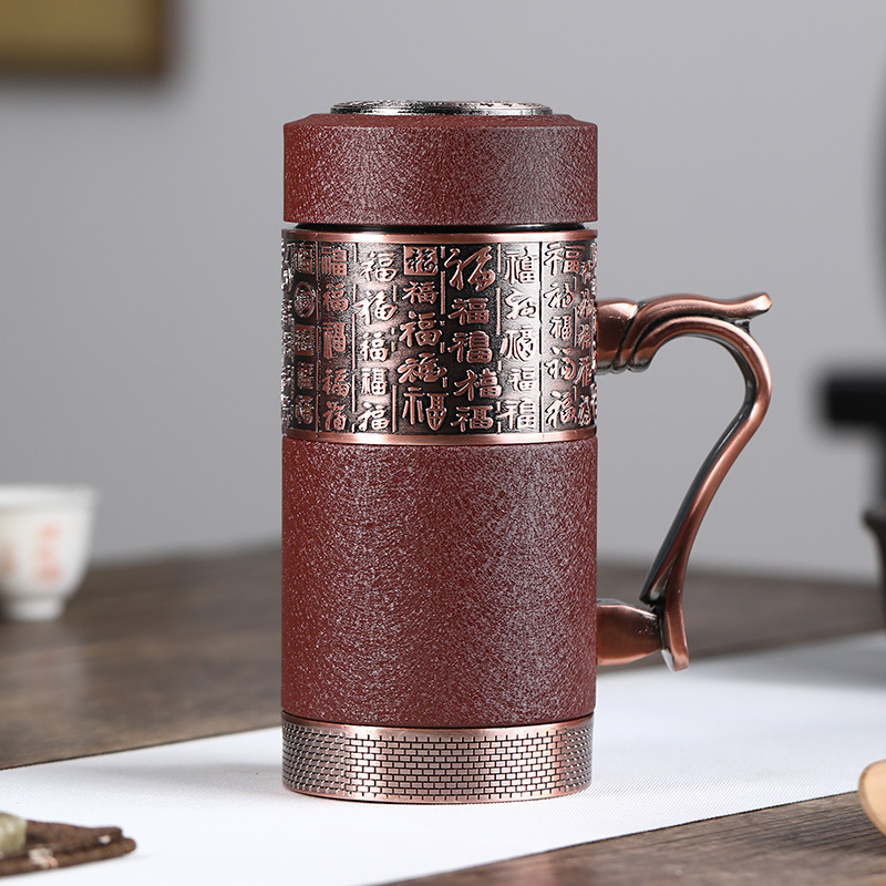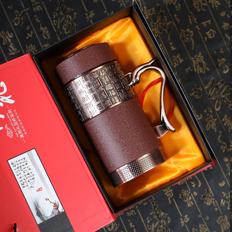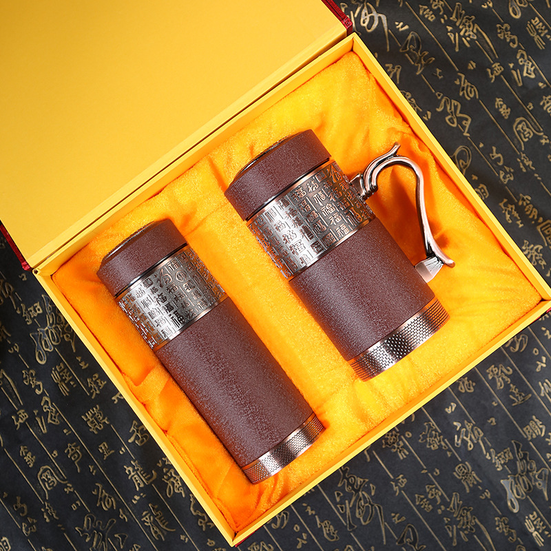 찻잔 보라색 모래 보온병 컵 고급 남녀 보라색 모래 컵 사무실 사업 기념 선물 컵 레터링 로고스토어 가기