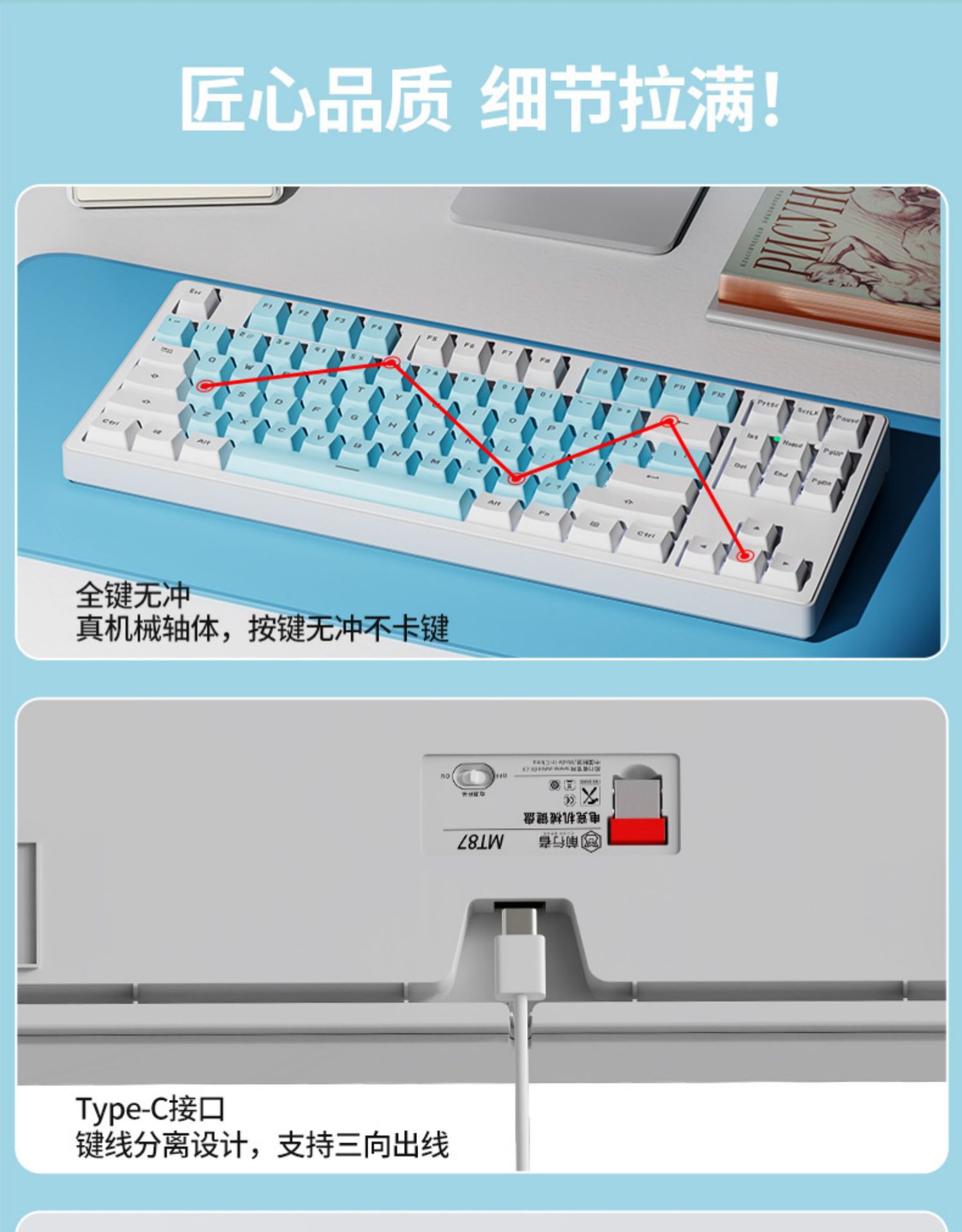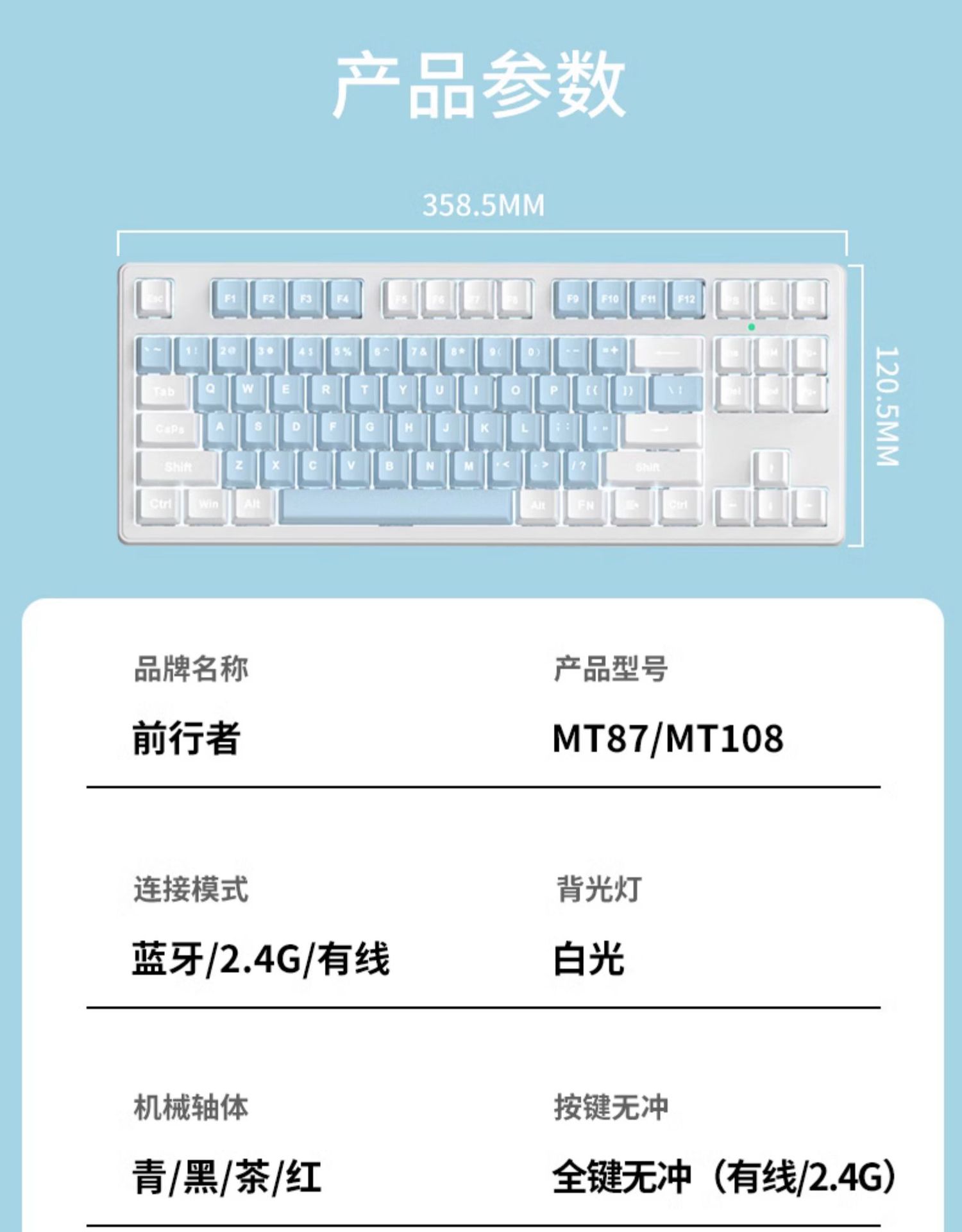 선구자 MT87 무선 블루투스 3 모드 기계식 키보드 전기 경쟁 게임 사무실 키보드 유선 87 키 범용스토어 가기