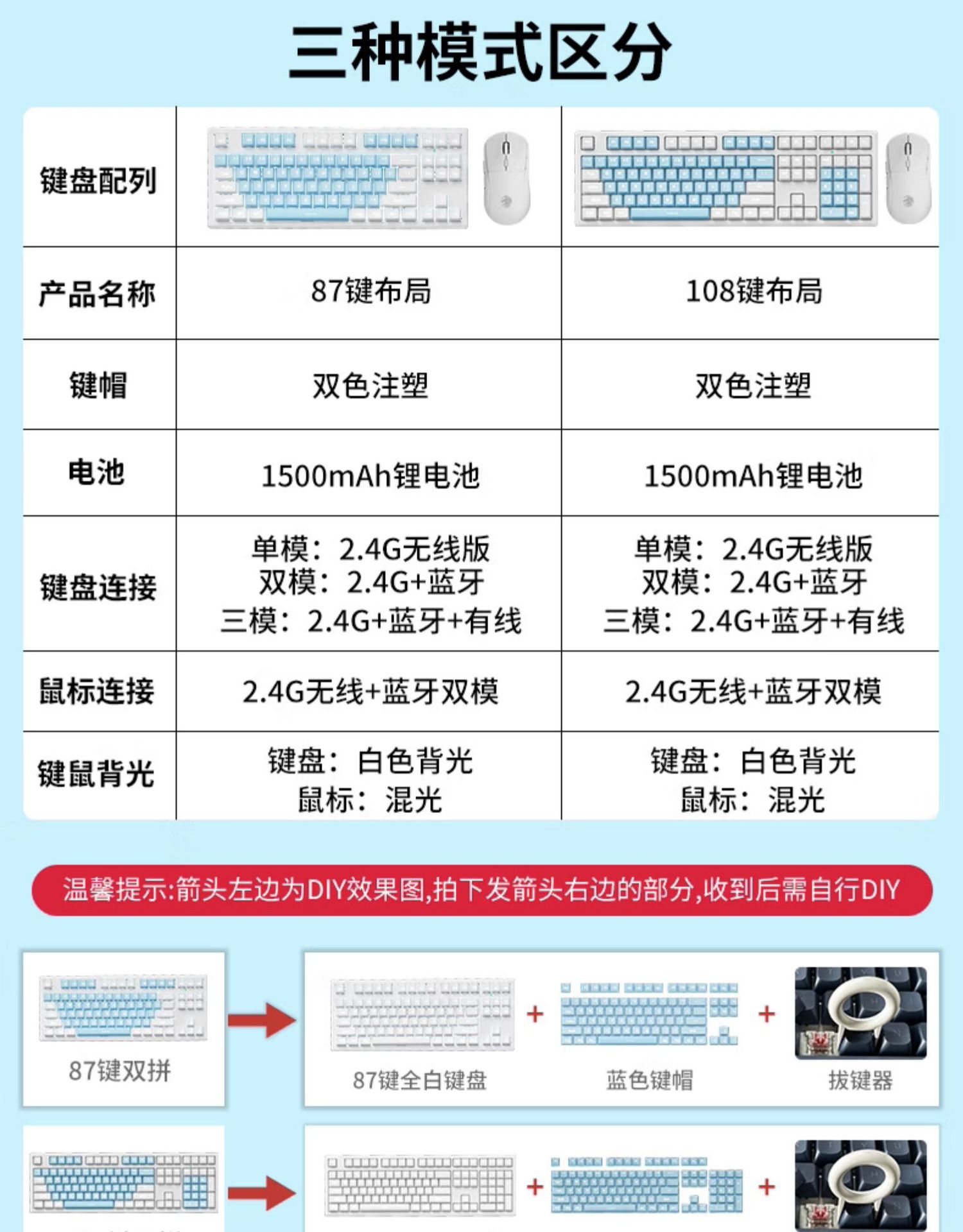 • 108키 블러셔 [백색광 포지티브 각인] 무선 블루투스 3모드 + 듀얼 모드 마우스