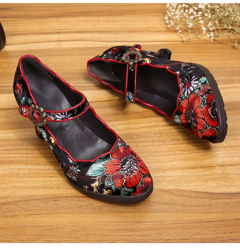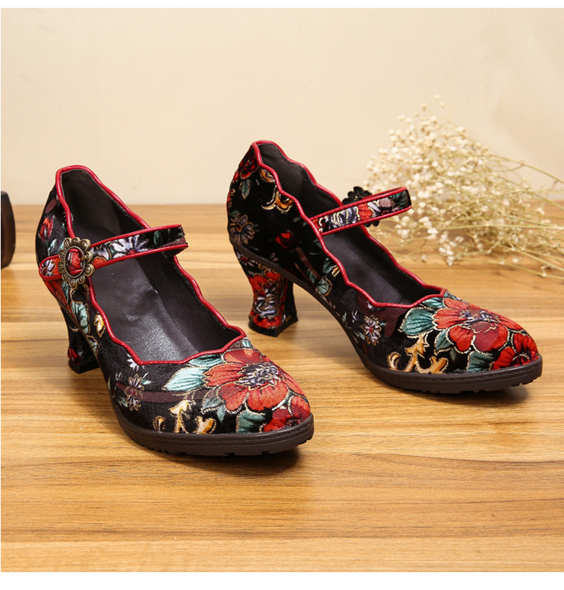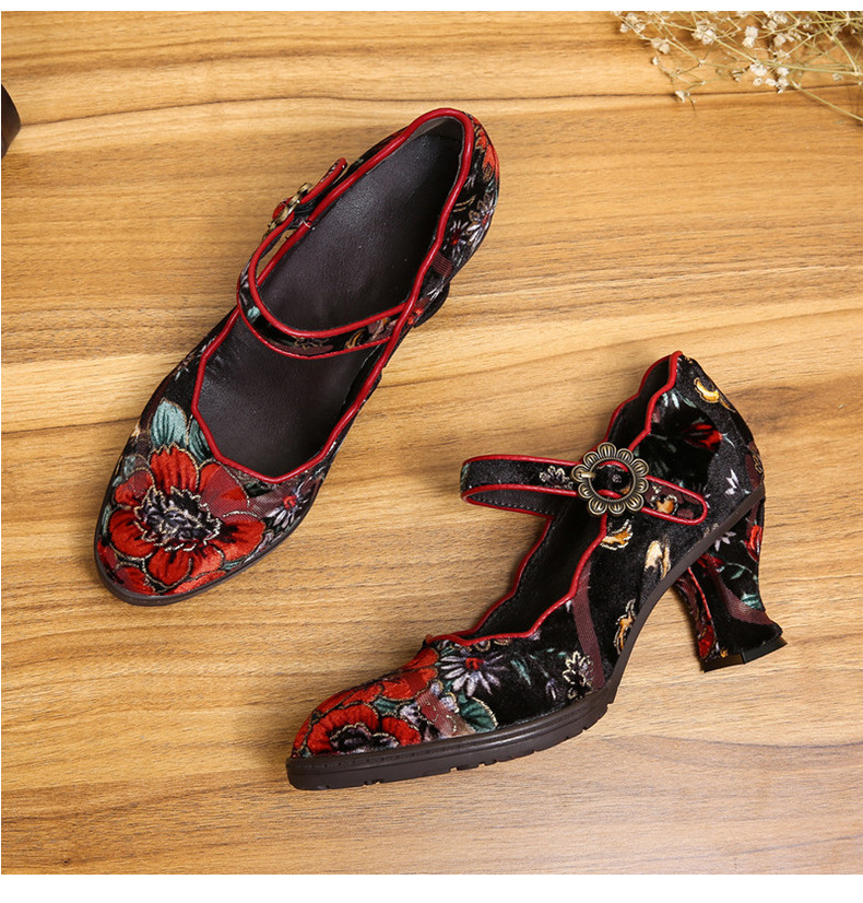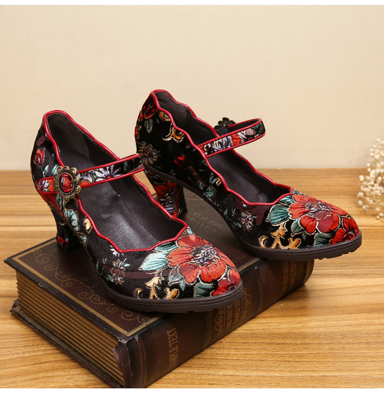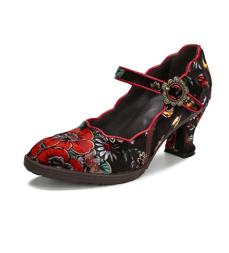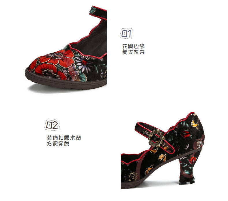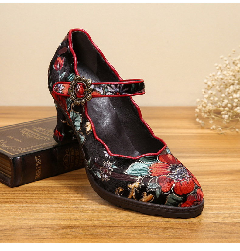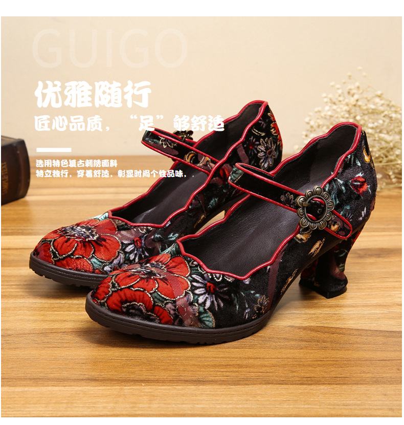 여성용 라운드 토 슈즈 소가죽 심플 여성 패션 신발 벨크로 미드 힐 와인 컵 힐 신발 여성 신발스토어 가기
