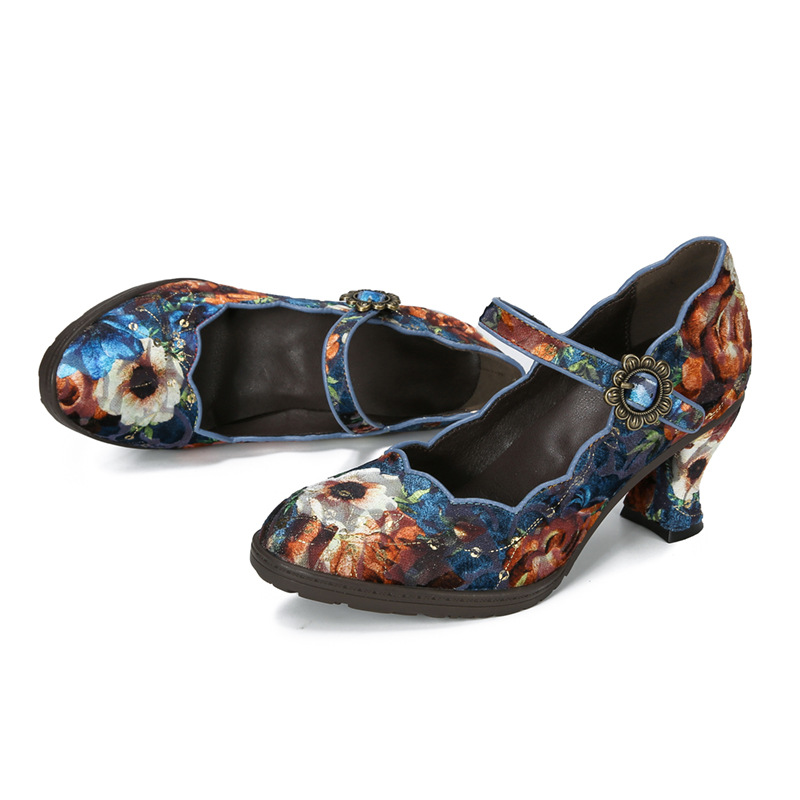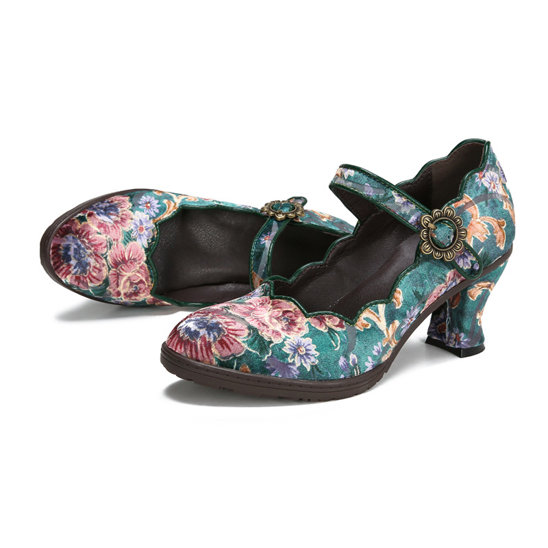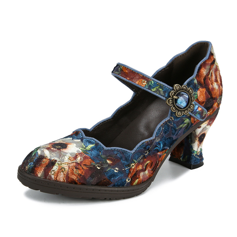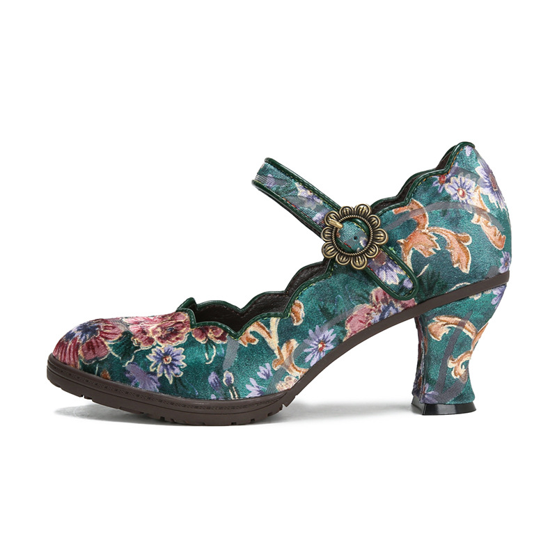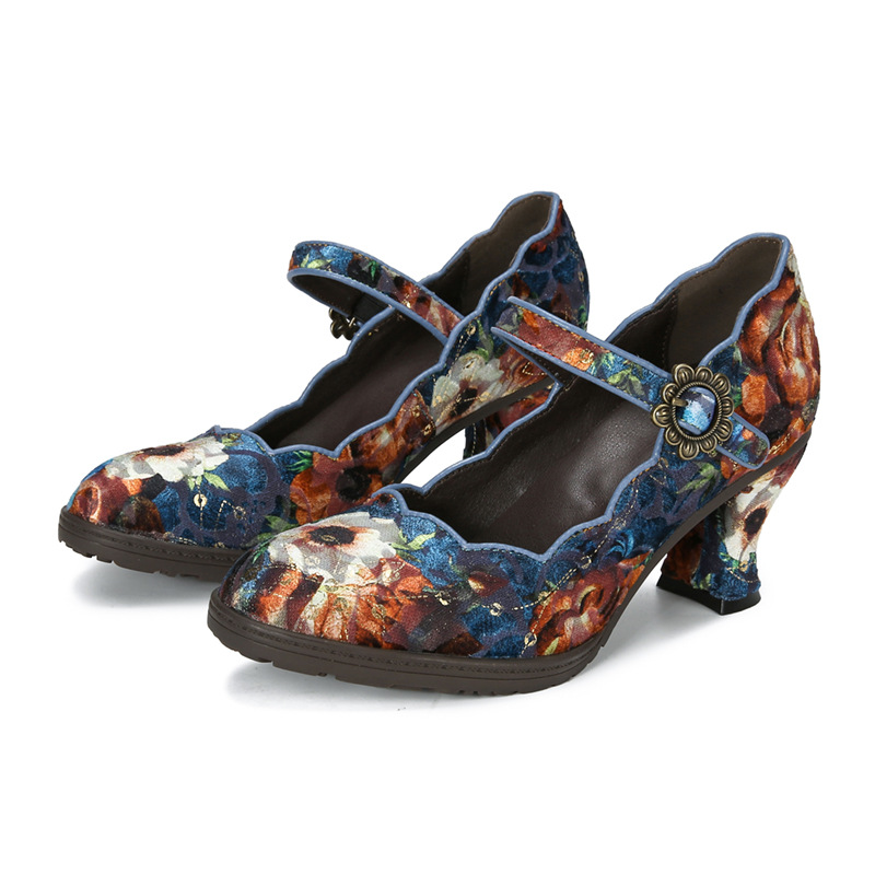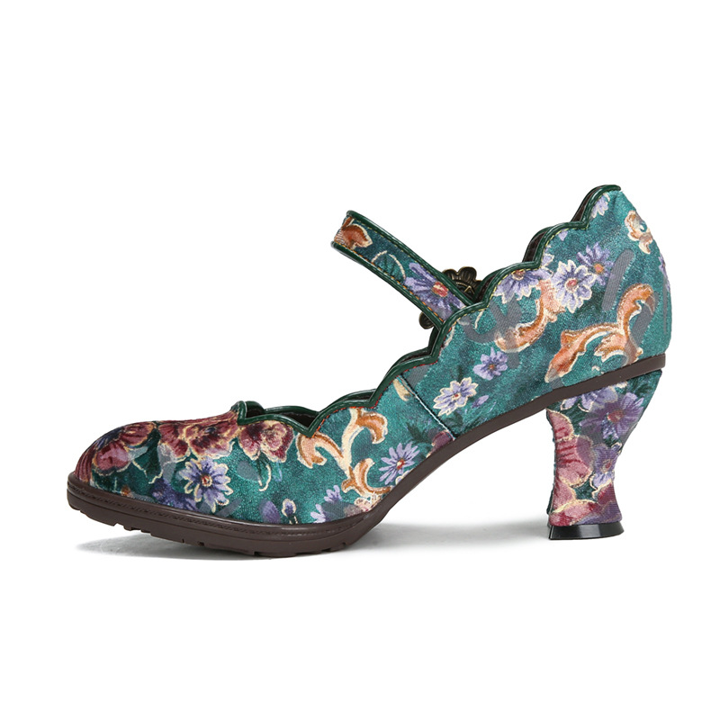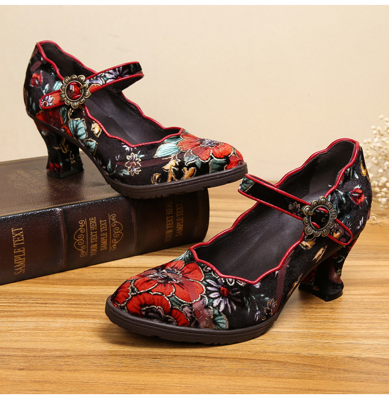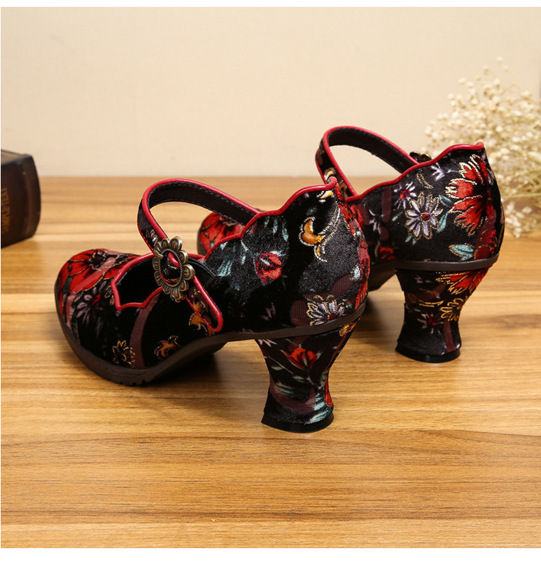 여성용 라운드 토 슈즈 소가죽 심플 여성 패션 신발 벨크로 미드 힐 와인 컵 힐 신발 여성 신발스토어 가기