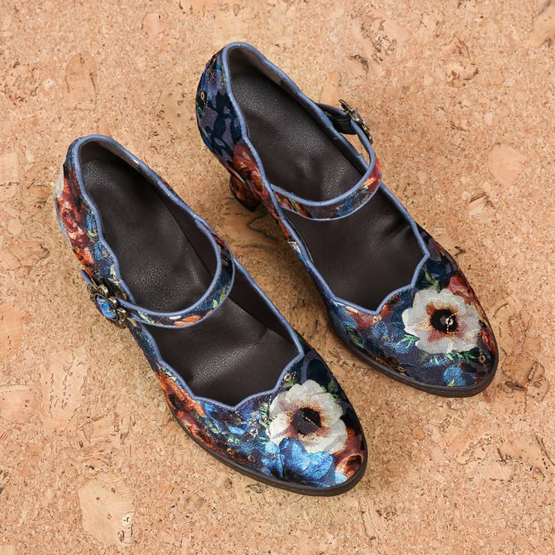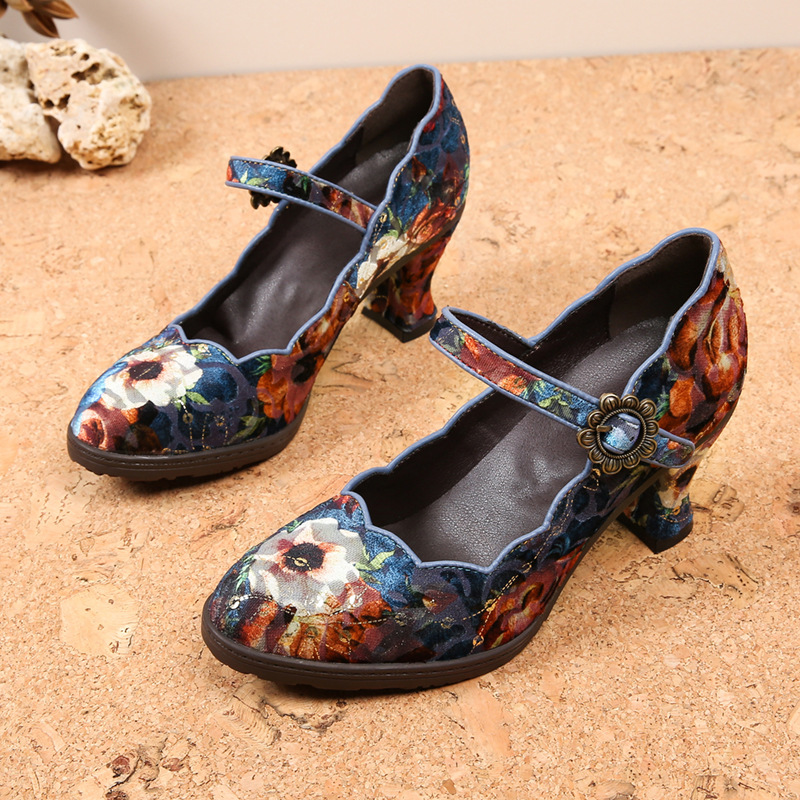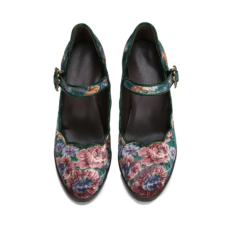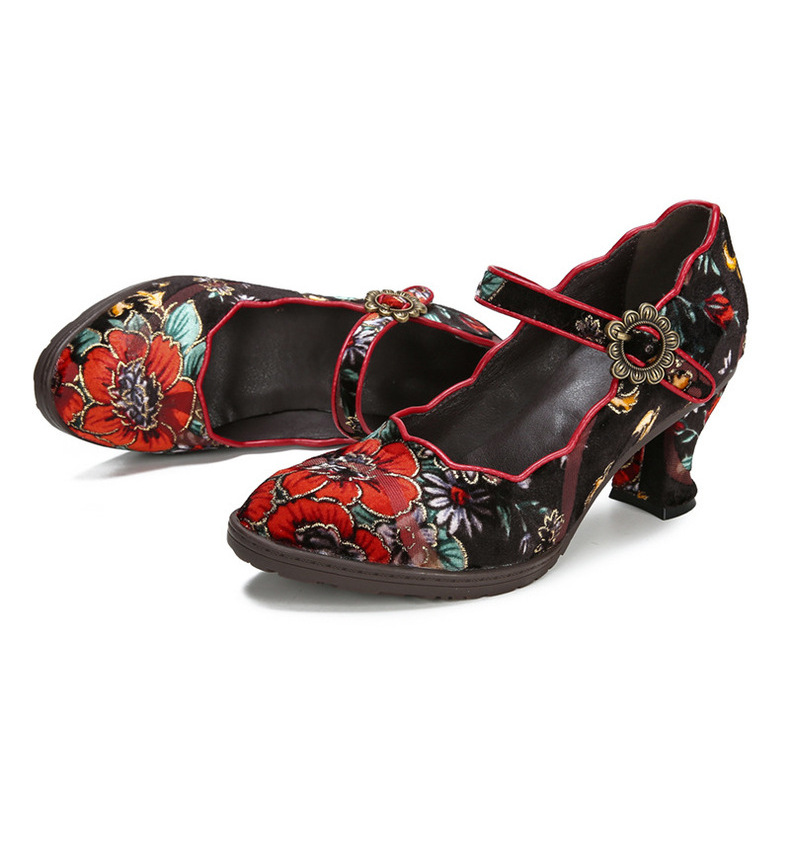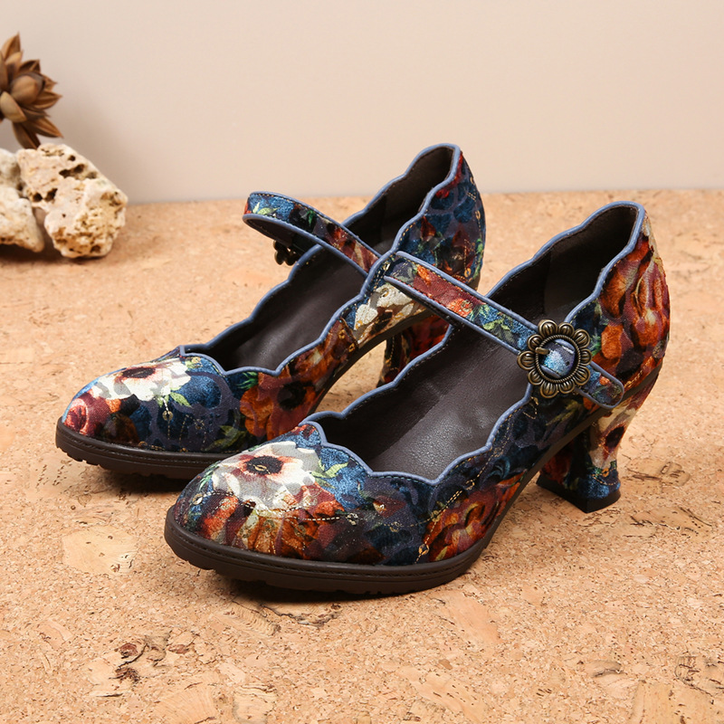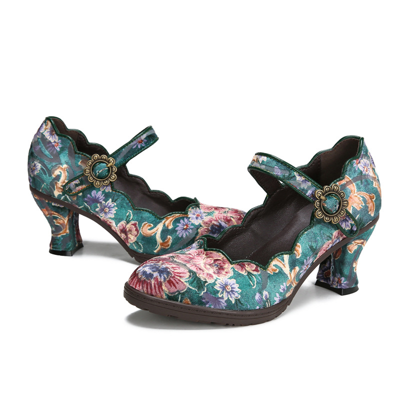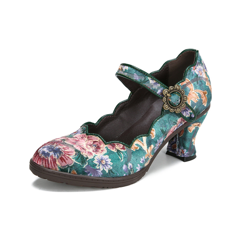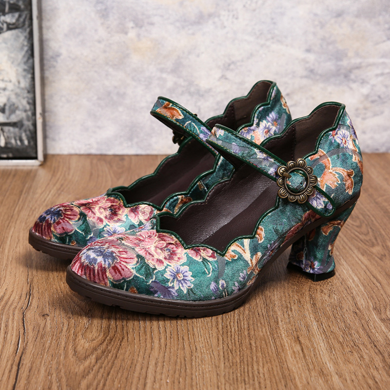 여성용 라운드 토 슈즈 소가죽 심플 여성 패션 신발 벨크로 미드 힐 와인 컵 힐 신발 여성 신발스토어 가기