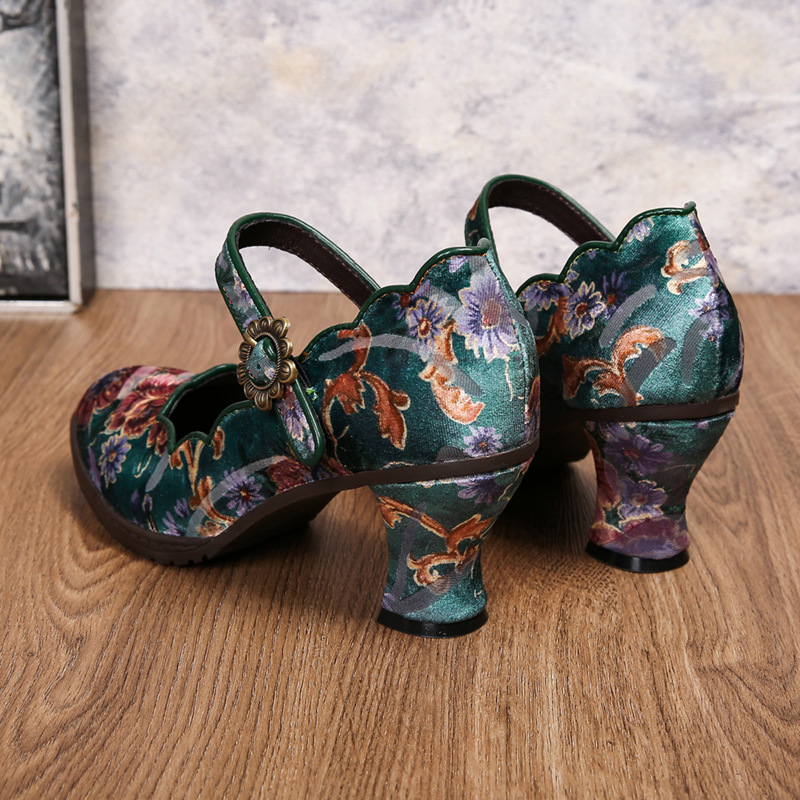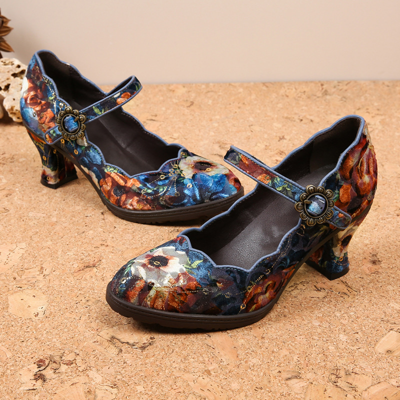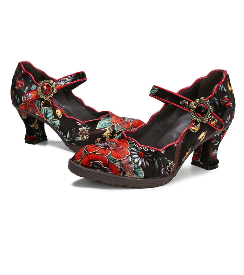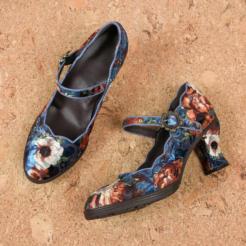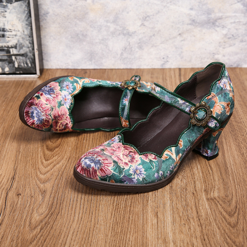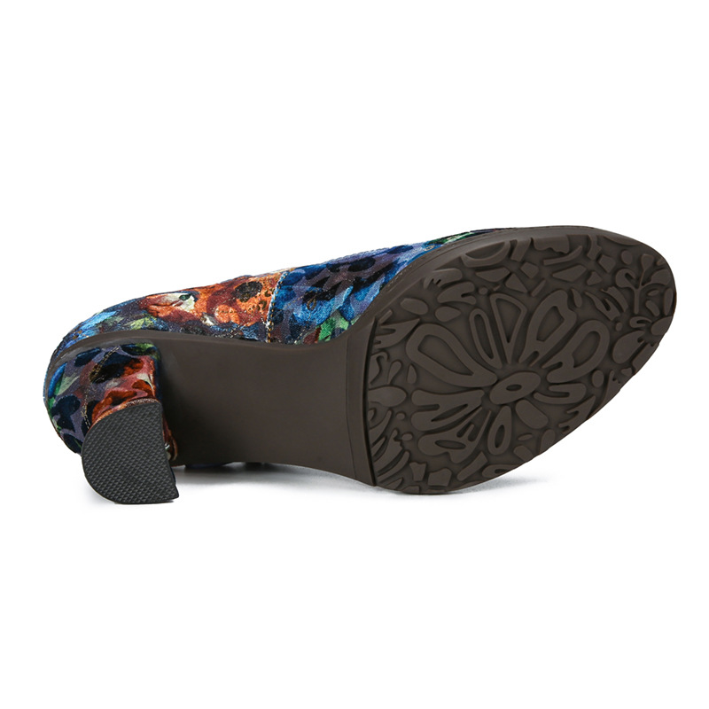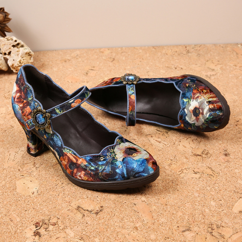 여성용 라운드 토 슈즈 소가죽 심플 여성 패션 신발 벨크로 미드 힐 와인 컵 힐 신발 여성 신발스토어 가기