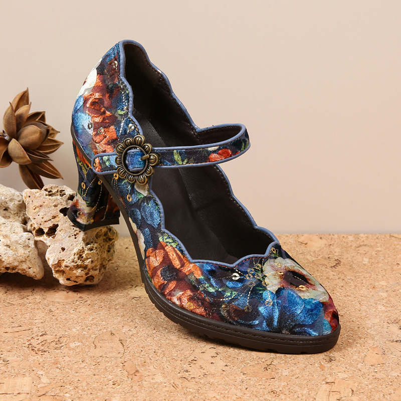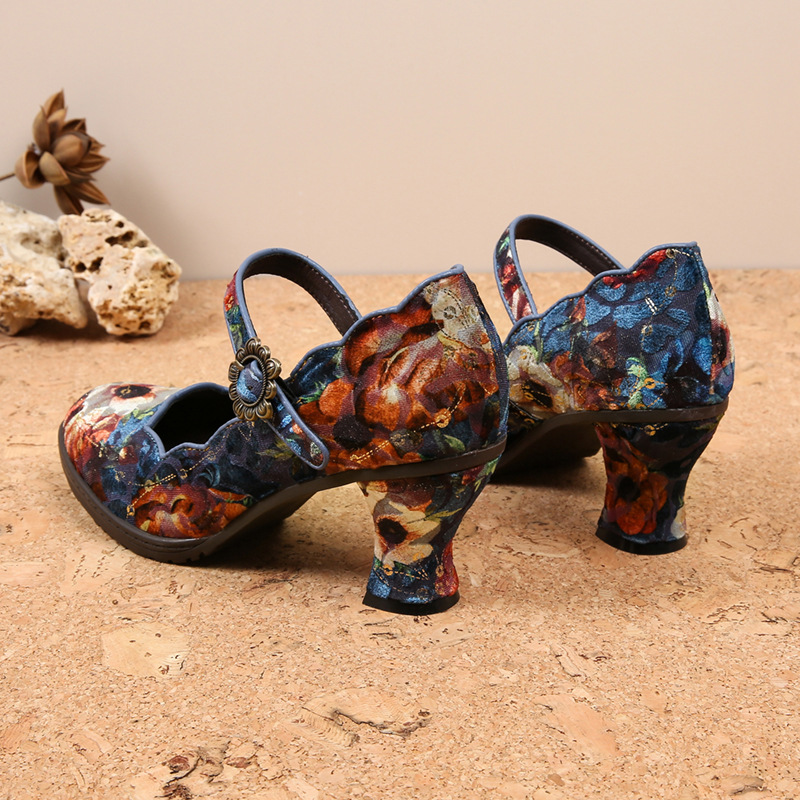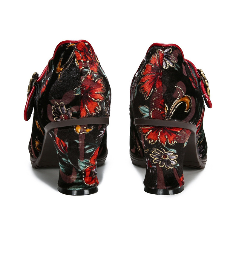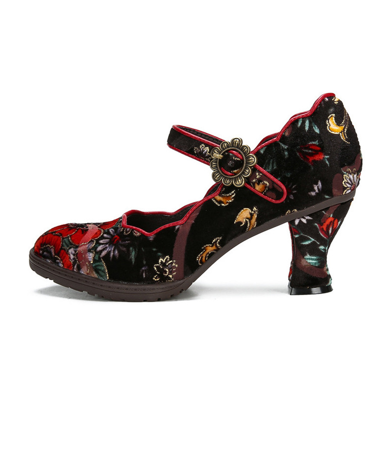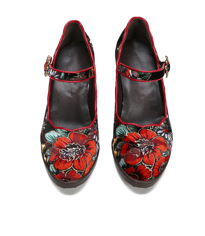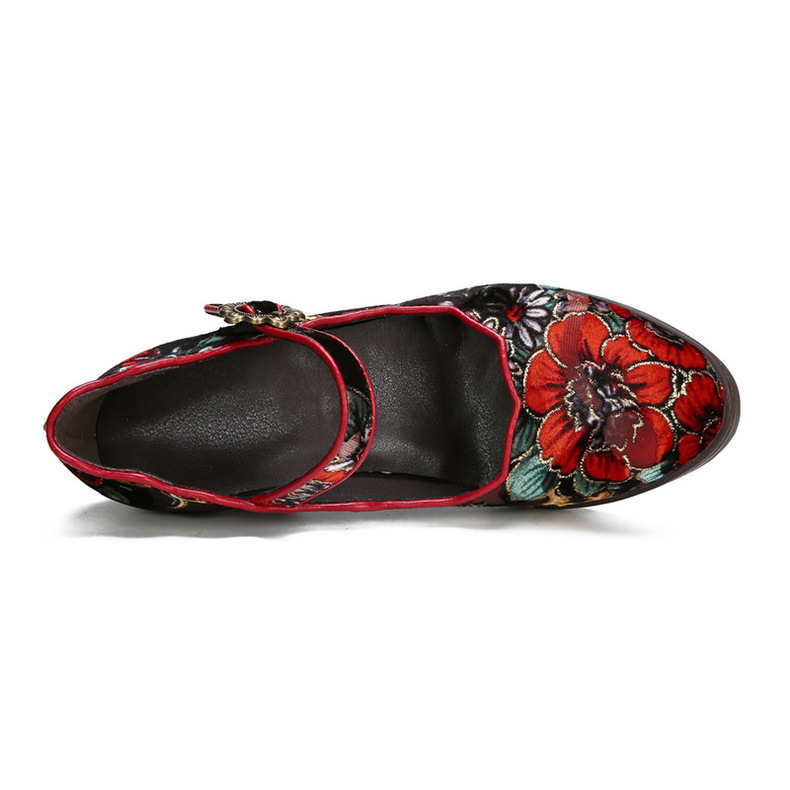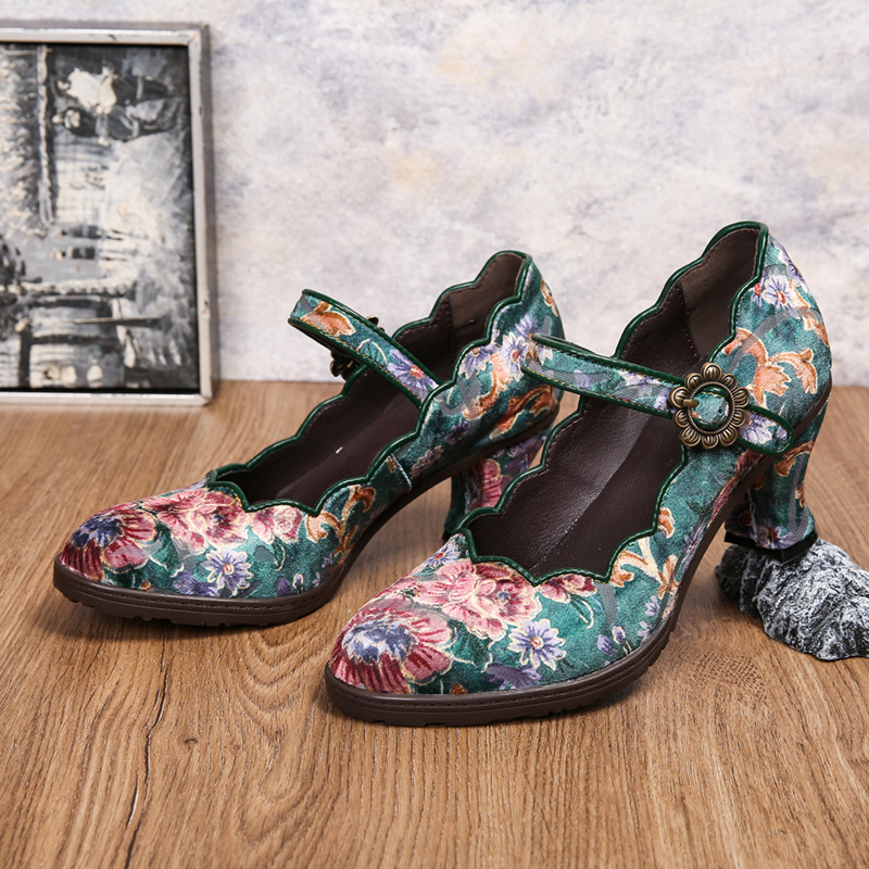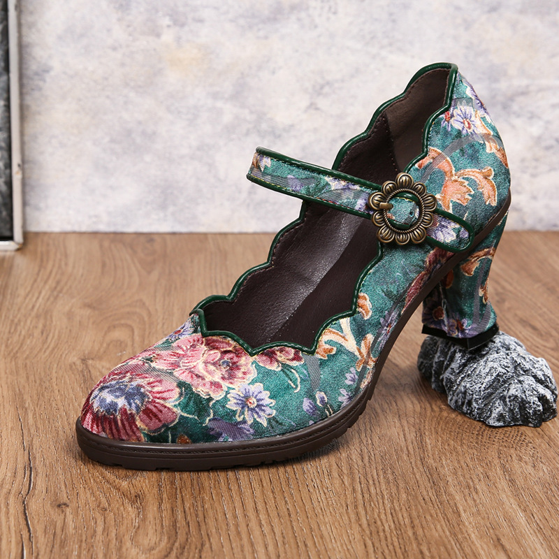 여성용 라운드 토 슈즈 소가죽 심플 여성 패션 신발 벨크로 미드 힐 와인 컵 힐 신발 여성 신발스토어 가기