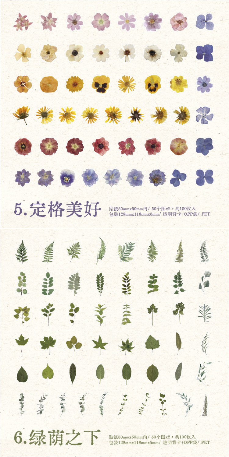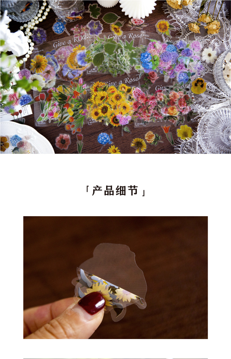 선물 사람들 장미 PET 스티커 가방 작은 신선한 식물 꽃 손 계정 재료 DIY 장식 콜라주 100 조각스토어 가기