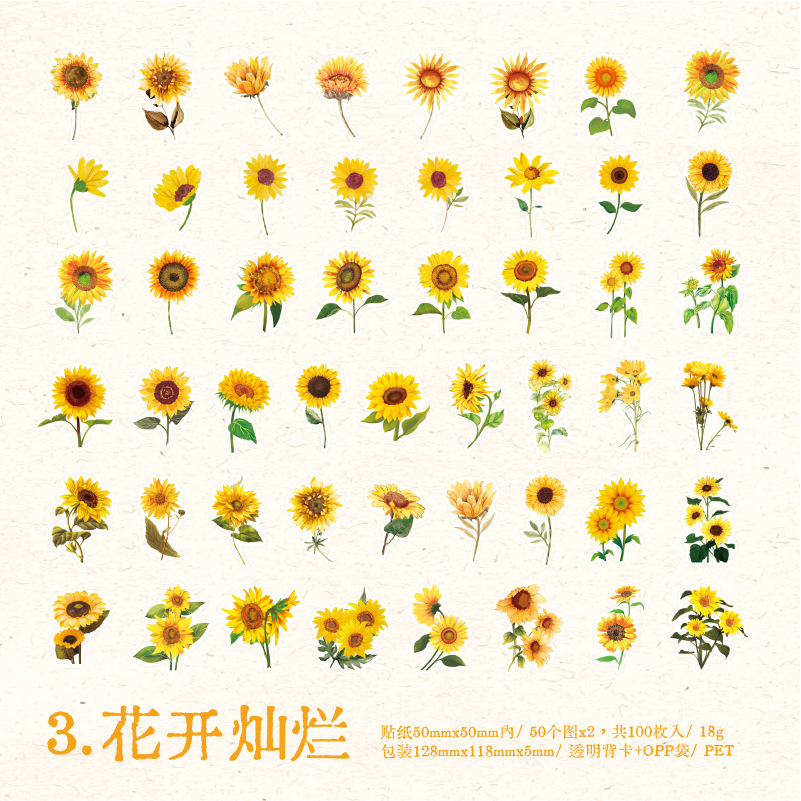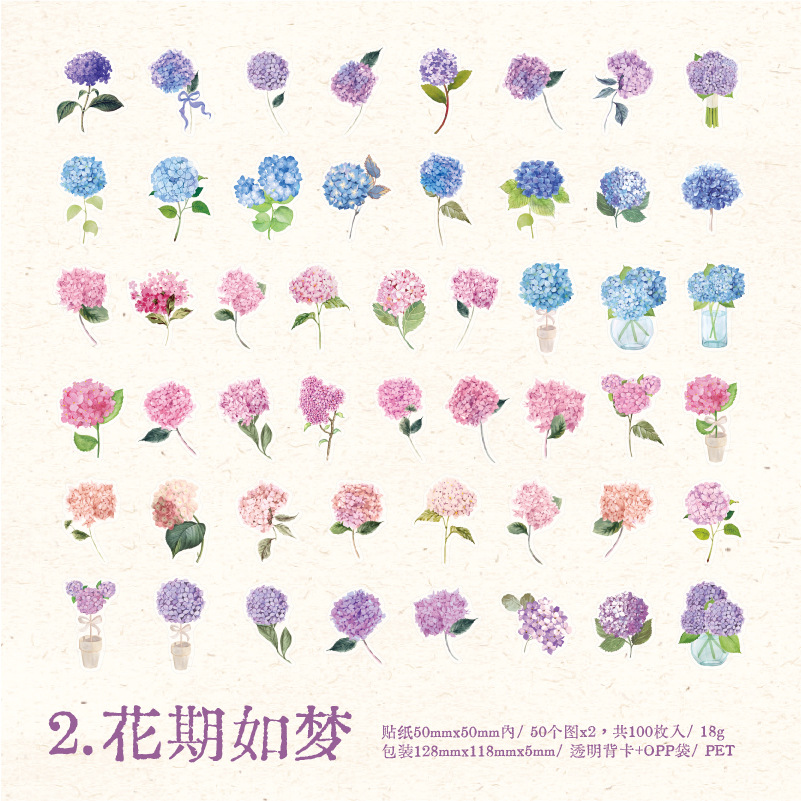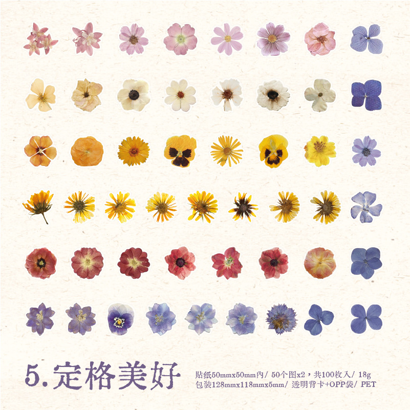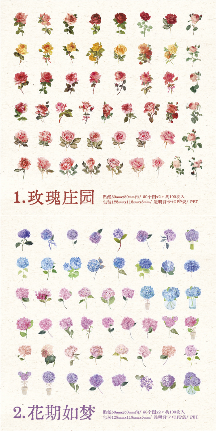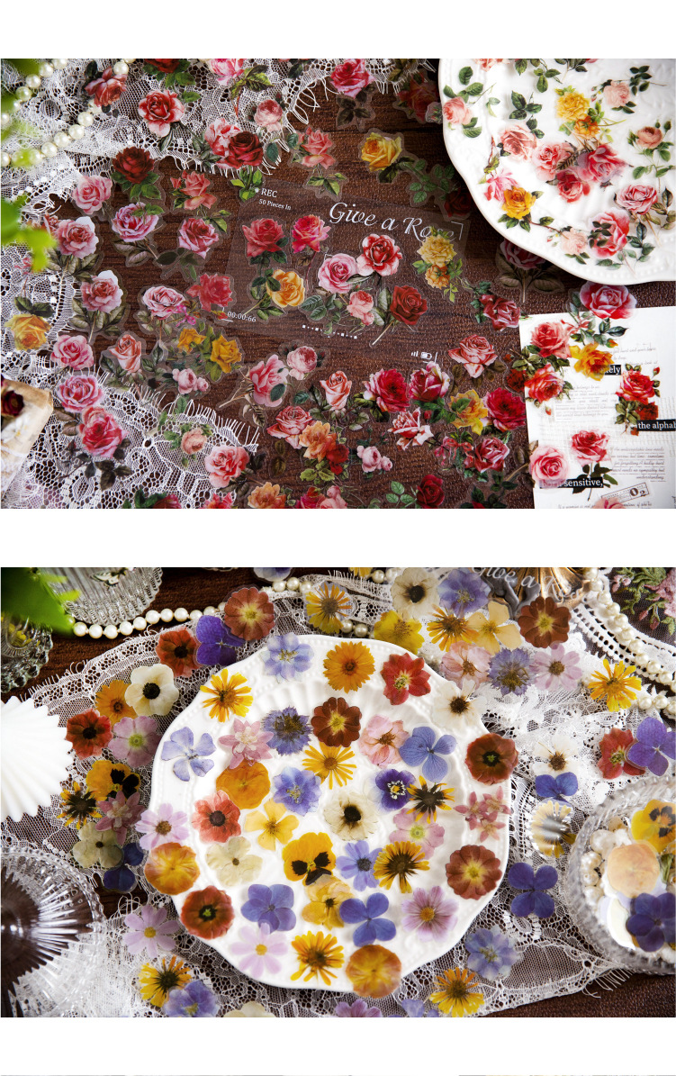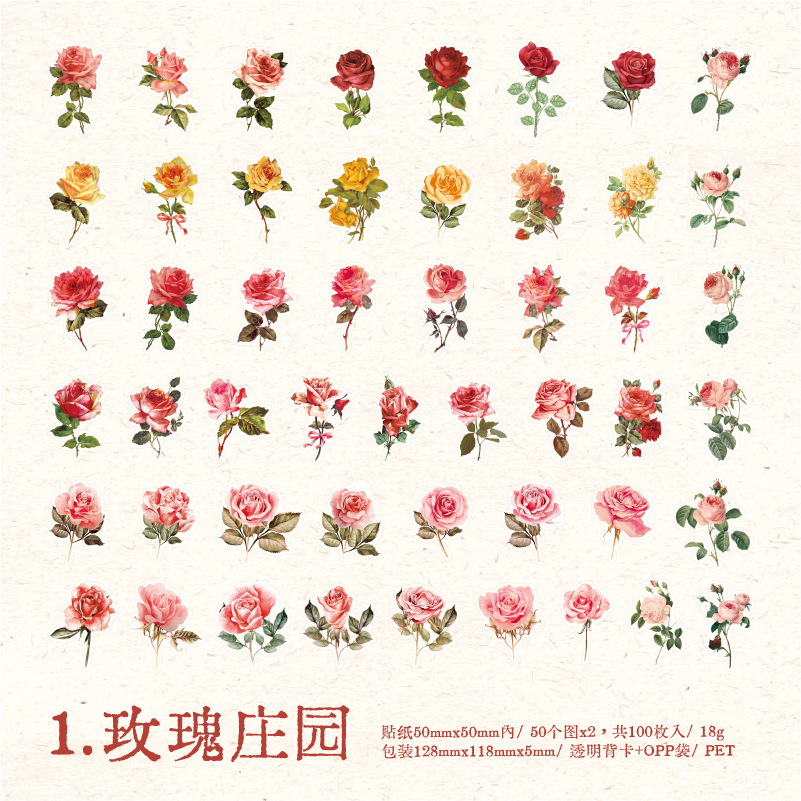 선물 사람들 장미 PET 스티커 가방 작은 신선한 식물 꽃 손 계정 재료 DIY 장식 콜라주 100 조각