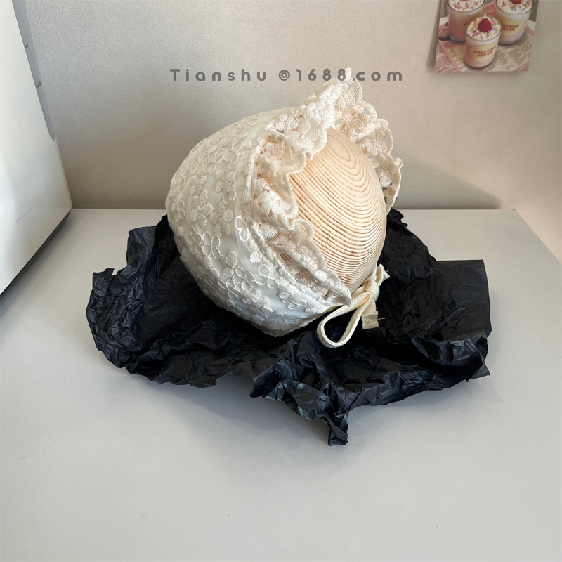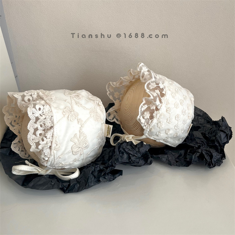 아기의 모자 봄과 여름 얇은 한국 공주 레이스 스트랩 발가락 모자 아기 소녀의 신생아 궁전 네탈 모자