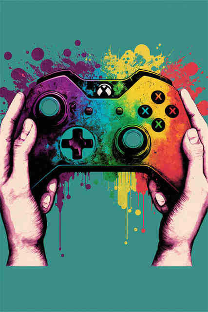 크로스 보더 핫 세일 80 년대 컬러 펑크 네온 게임 컨트롤러 멋진 게임 룸 장식 유화