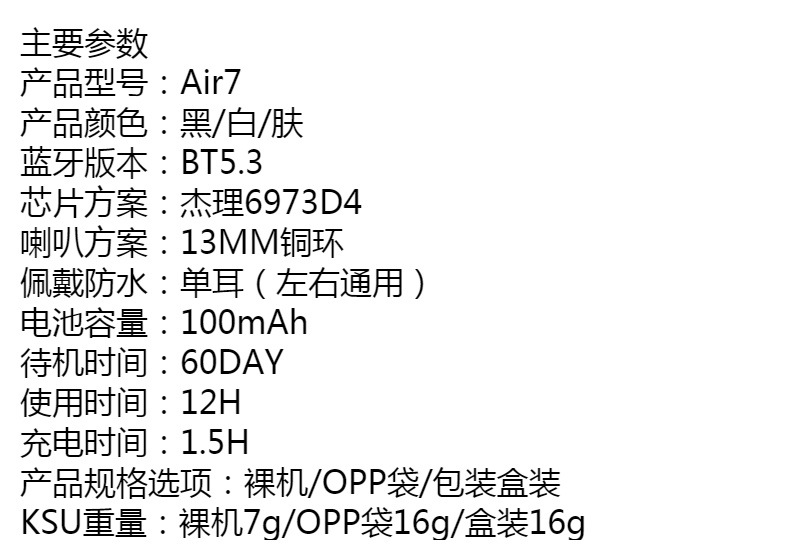 새로운 Air7 이어 클립 블루투스 헤드셋, 대용량 배터리, 싱글 이어 무선 게임용 헤드셋, 이어폰 없음, 척추 투과스토어 가기
