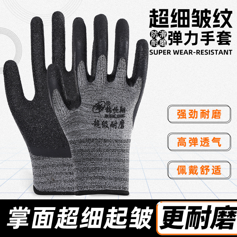 노동 장갑 라텍스 탄성 초미세 미세 다공성 주름 내마모성 미끄럼 방지 통기성 남성 및 여성 작업장 철강 근로자