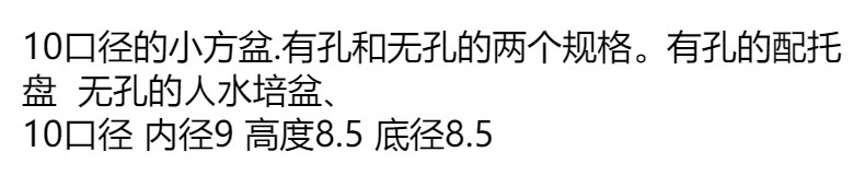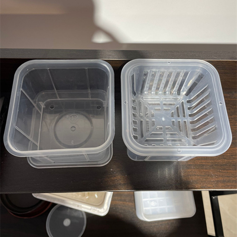 • 투명 10 구경 작은 사각형 분지 (구멍이있는 트레이 포함)