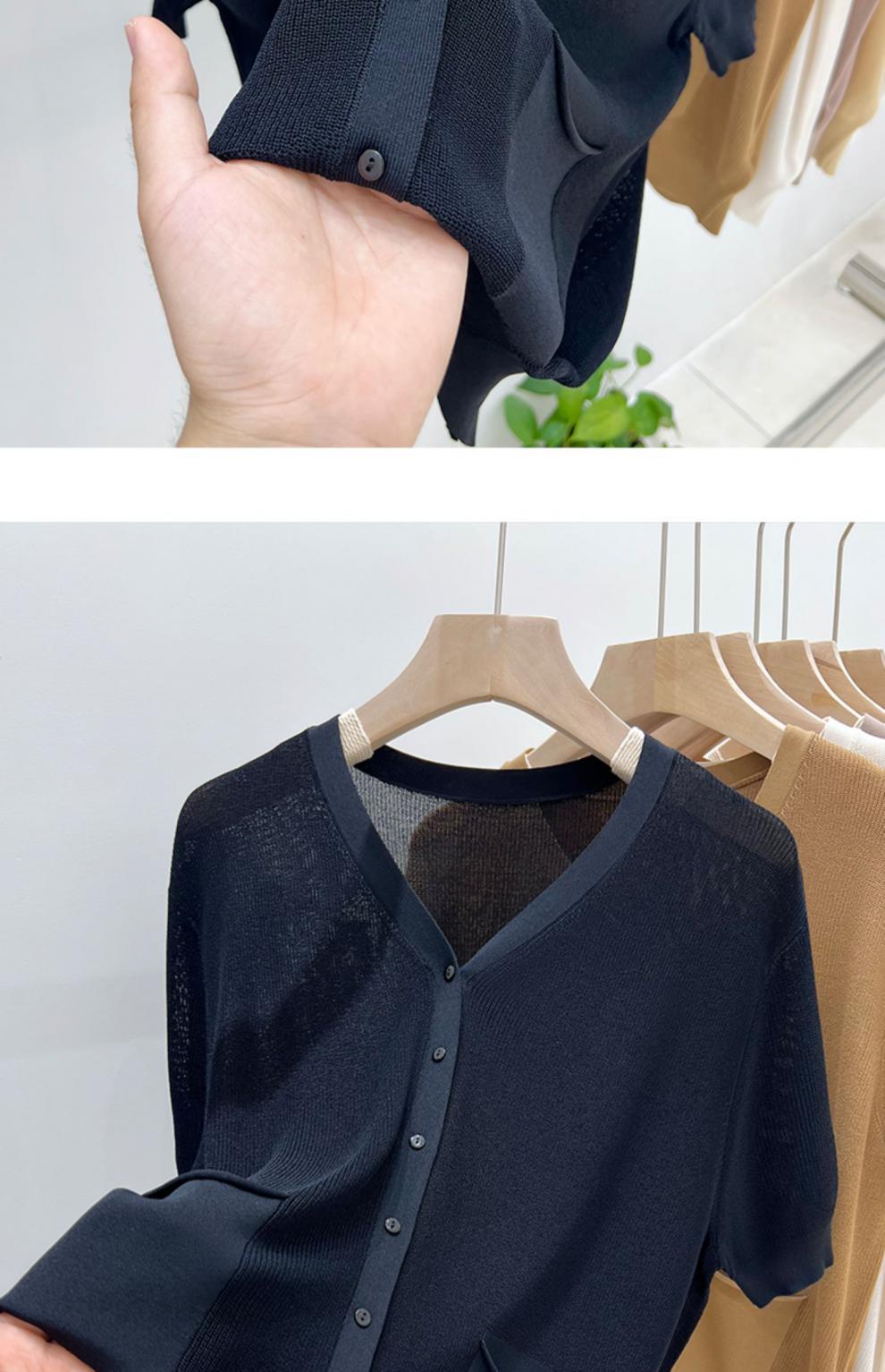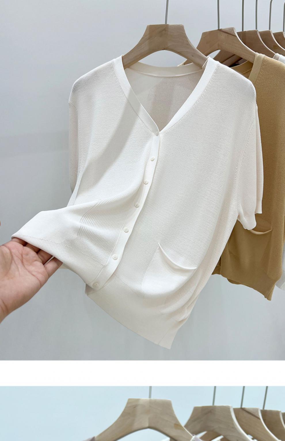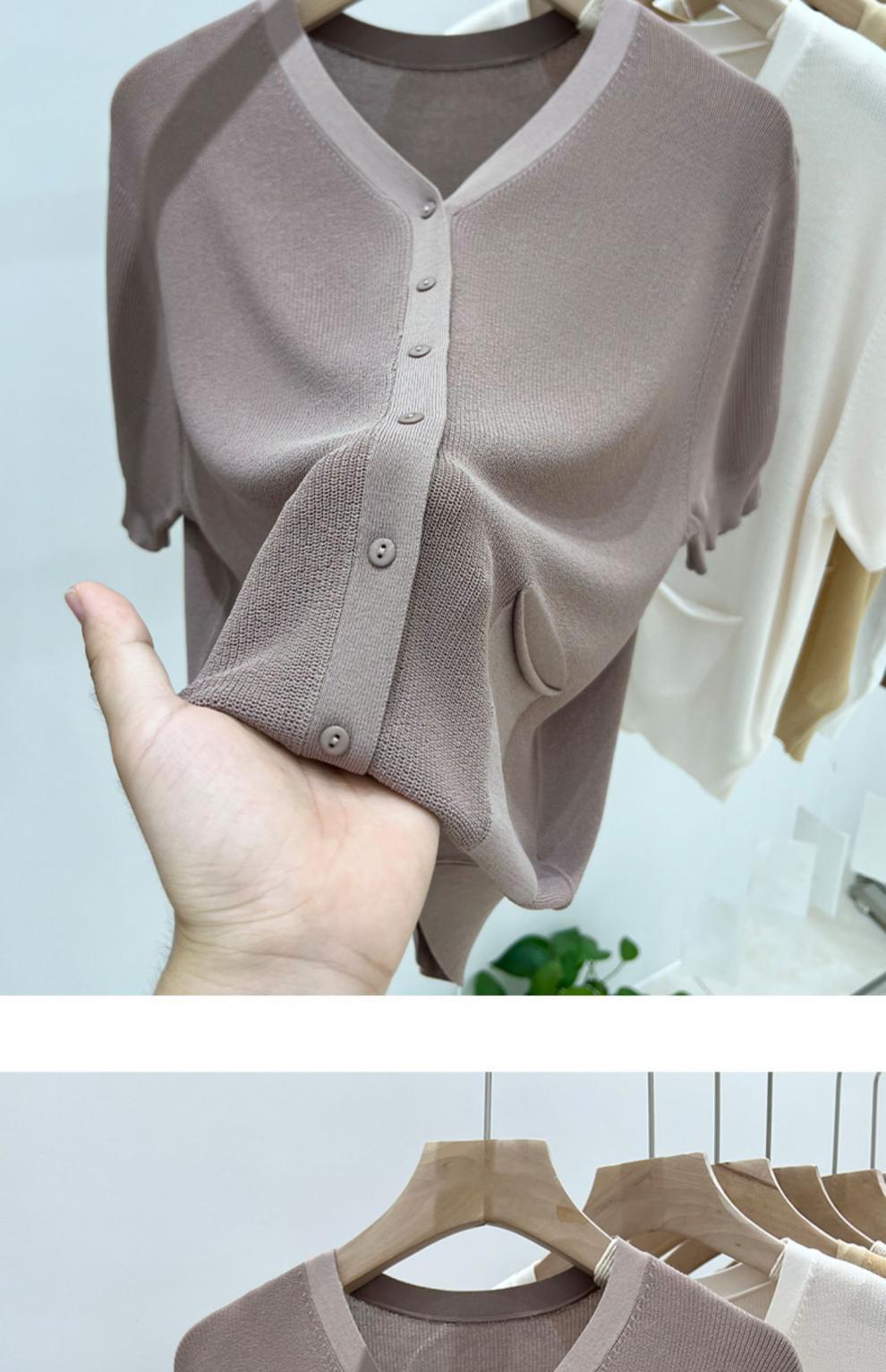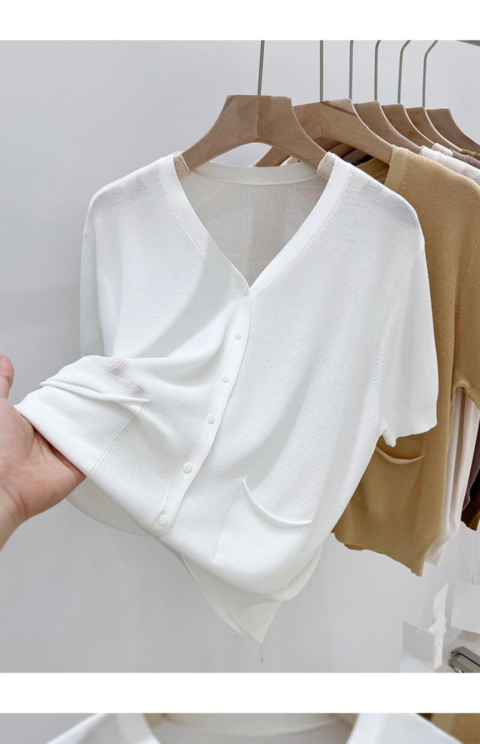 V-넥 반팔 어깨 니트 가짜 가디건 여성용 여름 얇은 탑 2023 새로운 느슨한 슬림 셔츠