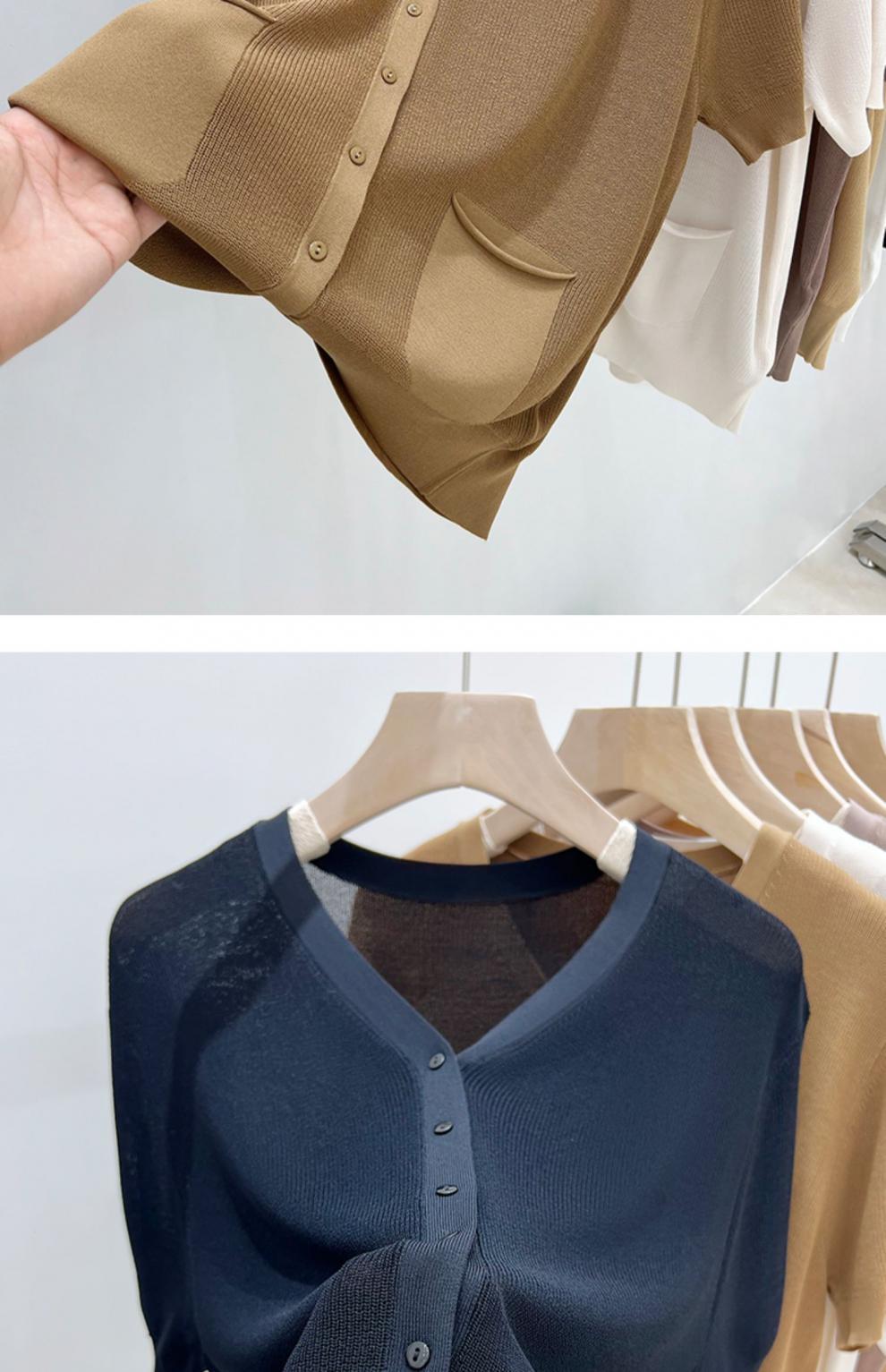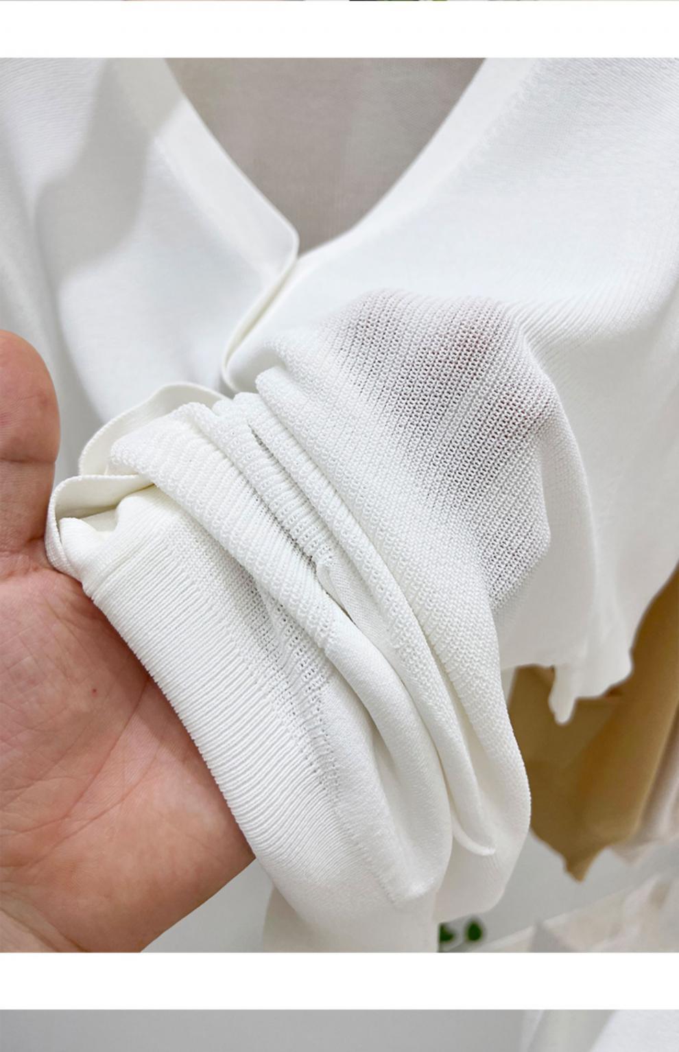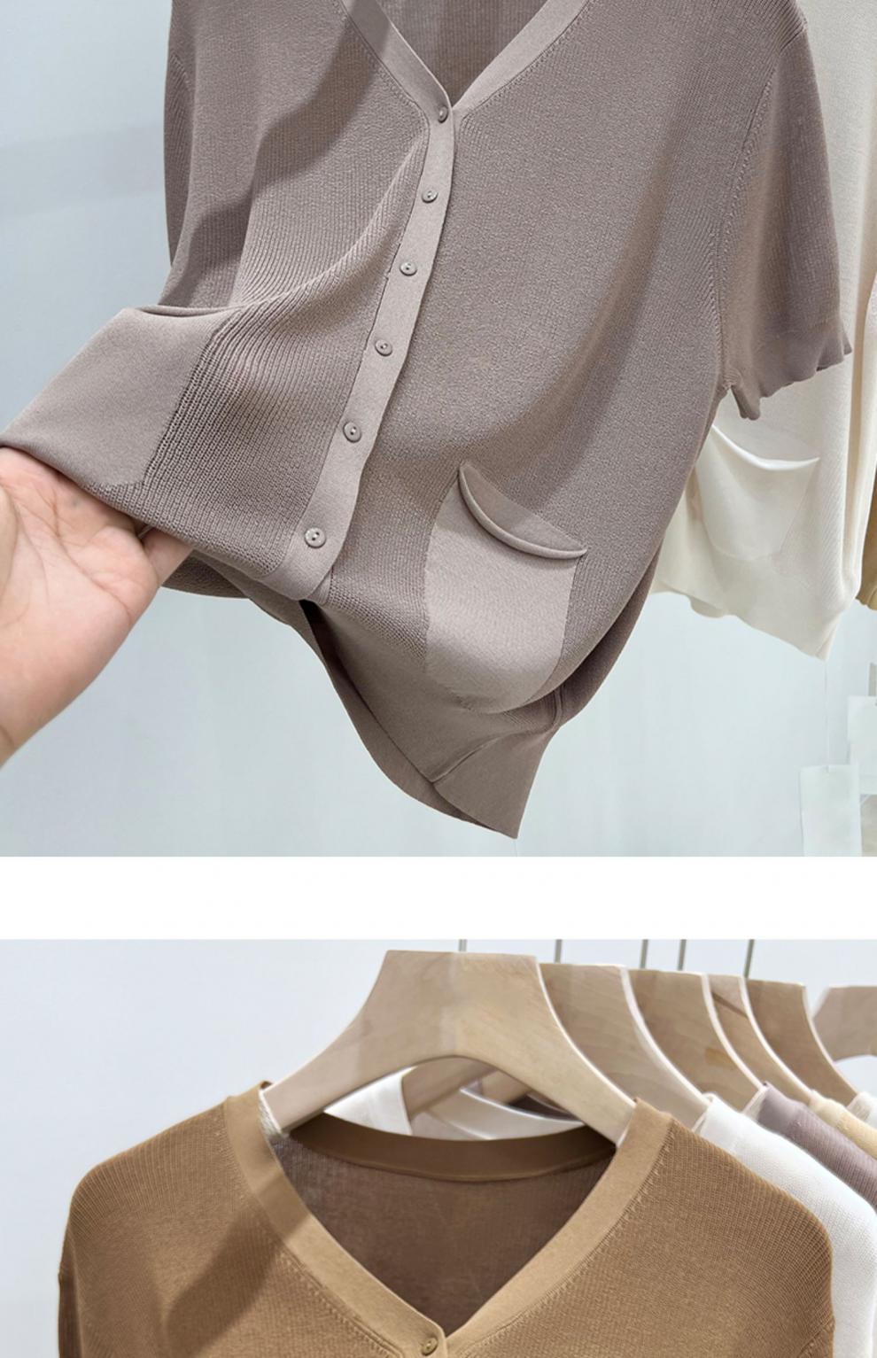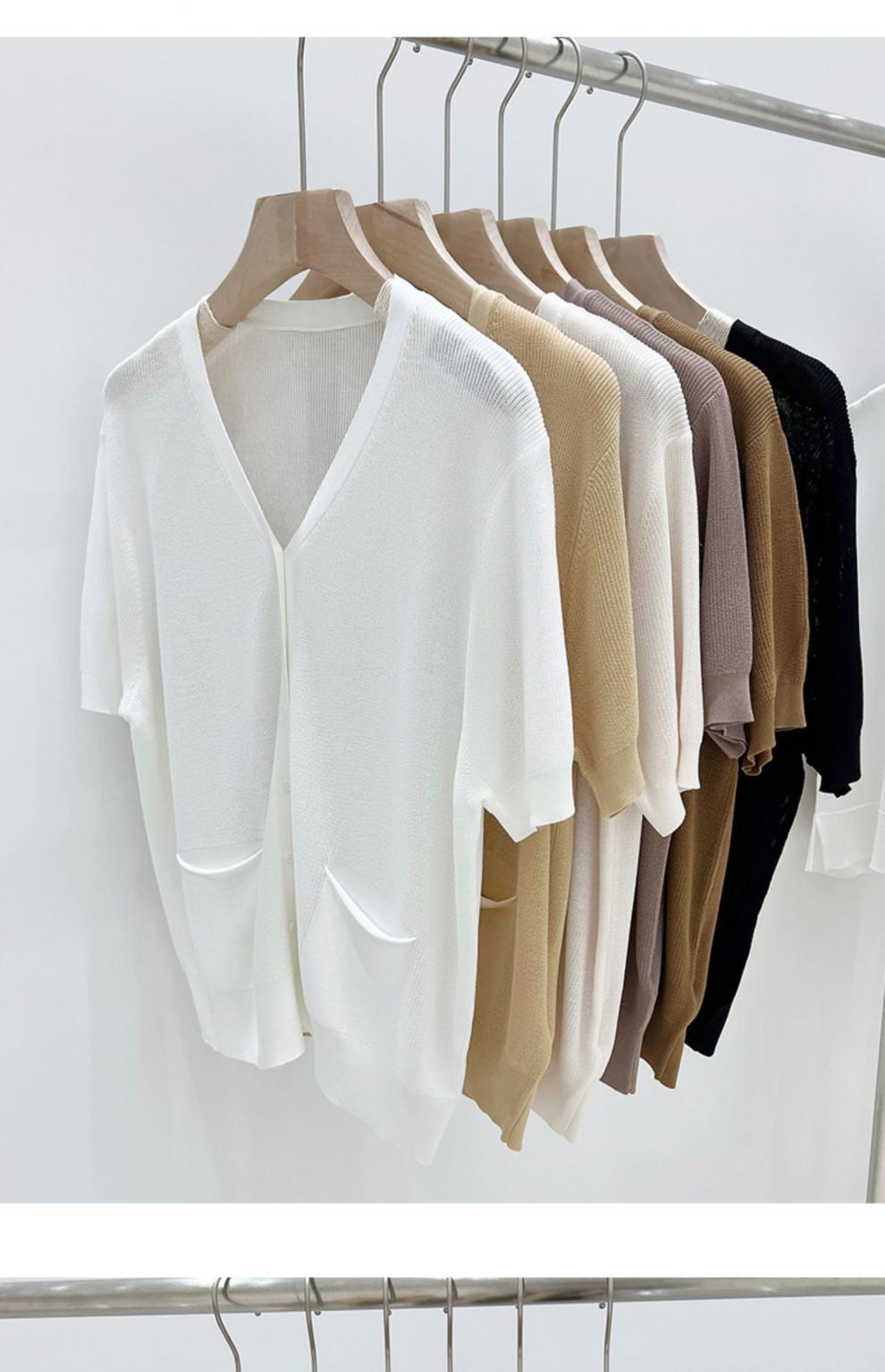 V-넥 반팔 어깨 니트 가짜 가디건 여성용 여름 얇은 탑 2023 새로운 느슨한 슬림 셔츠